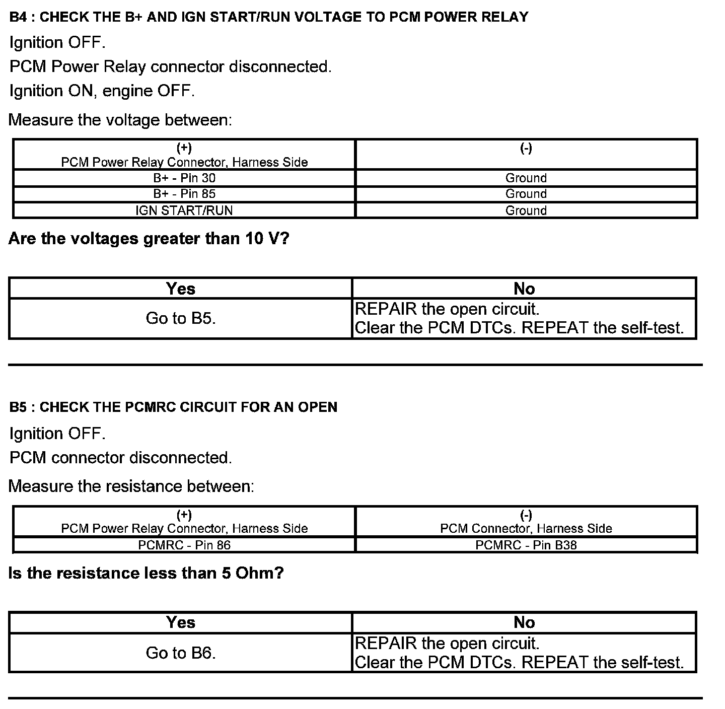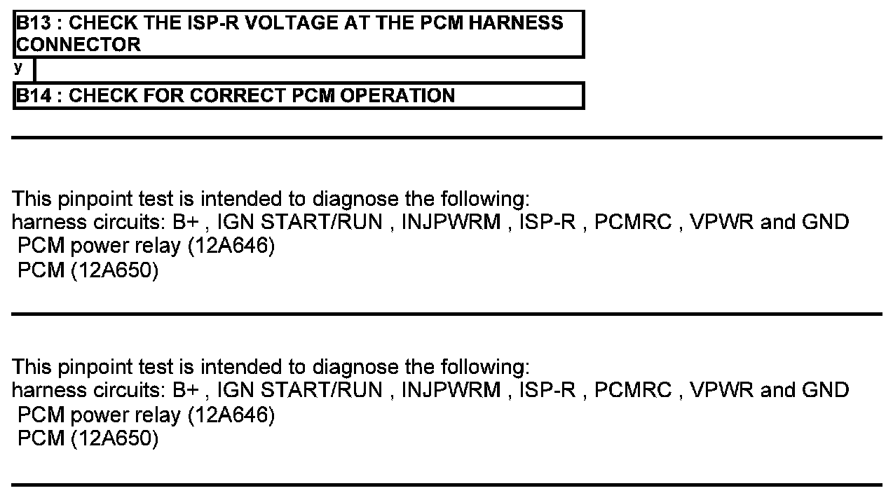Home >> Ford >> 2012 >> Fusion FWD L4-2.5L >> Repair and Diagnosis >> Powertrain Management >> Computers and Control Systems >> Testing and Inspection >> Pinpoint Tests >> Test B: Powertrain Control Module (PCM) Power Relay >> Manual Transmission