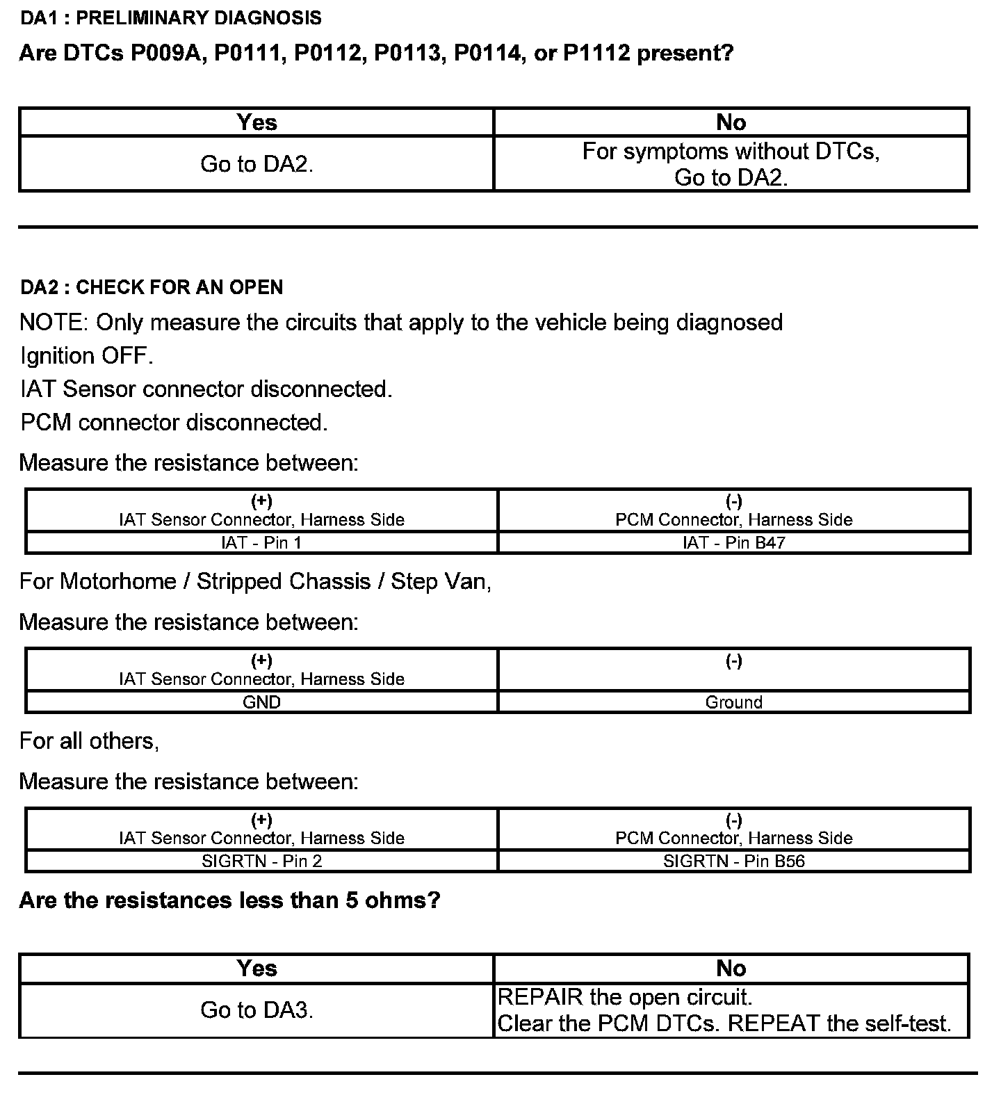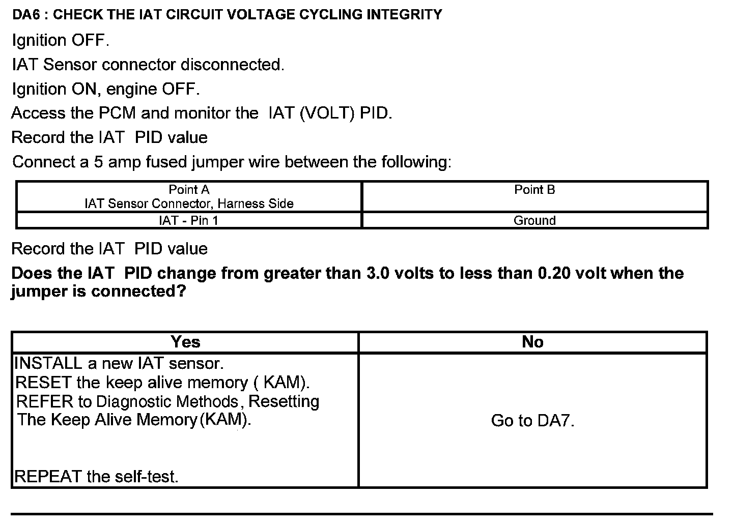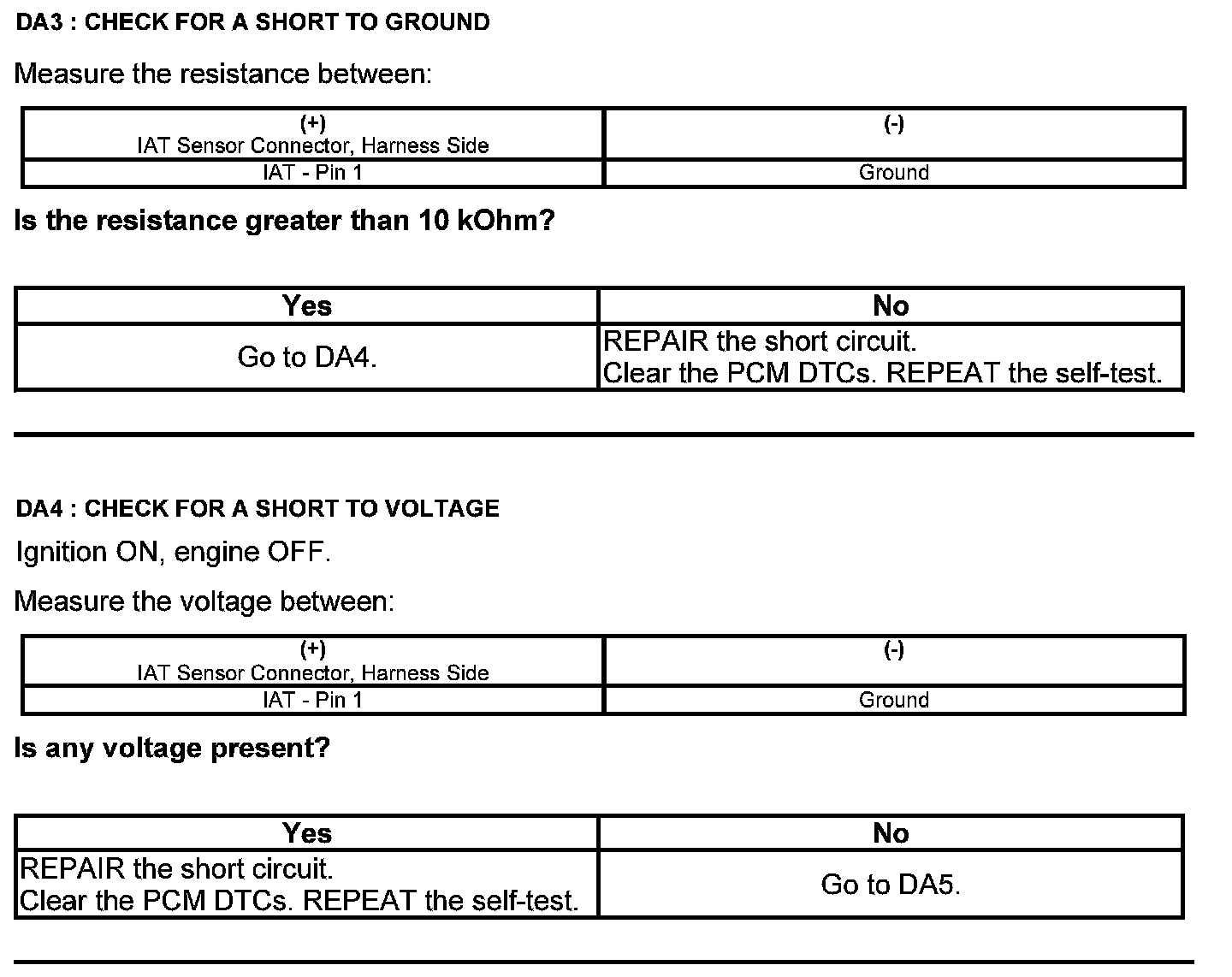 Home >> Ford >> 2012 >> Fusion FWD L4-2.5L >> Repair and Diagnosis >> Powertrain Management >> Computers and Control Systems >> Testing and Inspection >> Pinpoint Tests >> Test DA: Intake Air Temperature (IAT) Sensor >> Manual Transmission