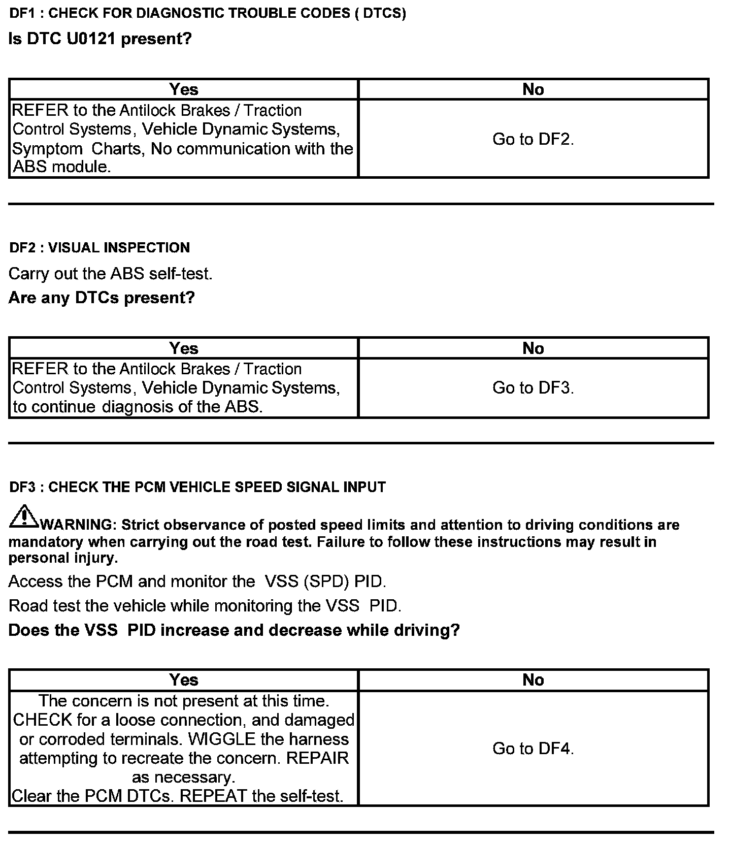 Test DF: Vehicle Speed Circuit (VSC) Check