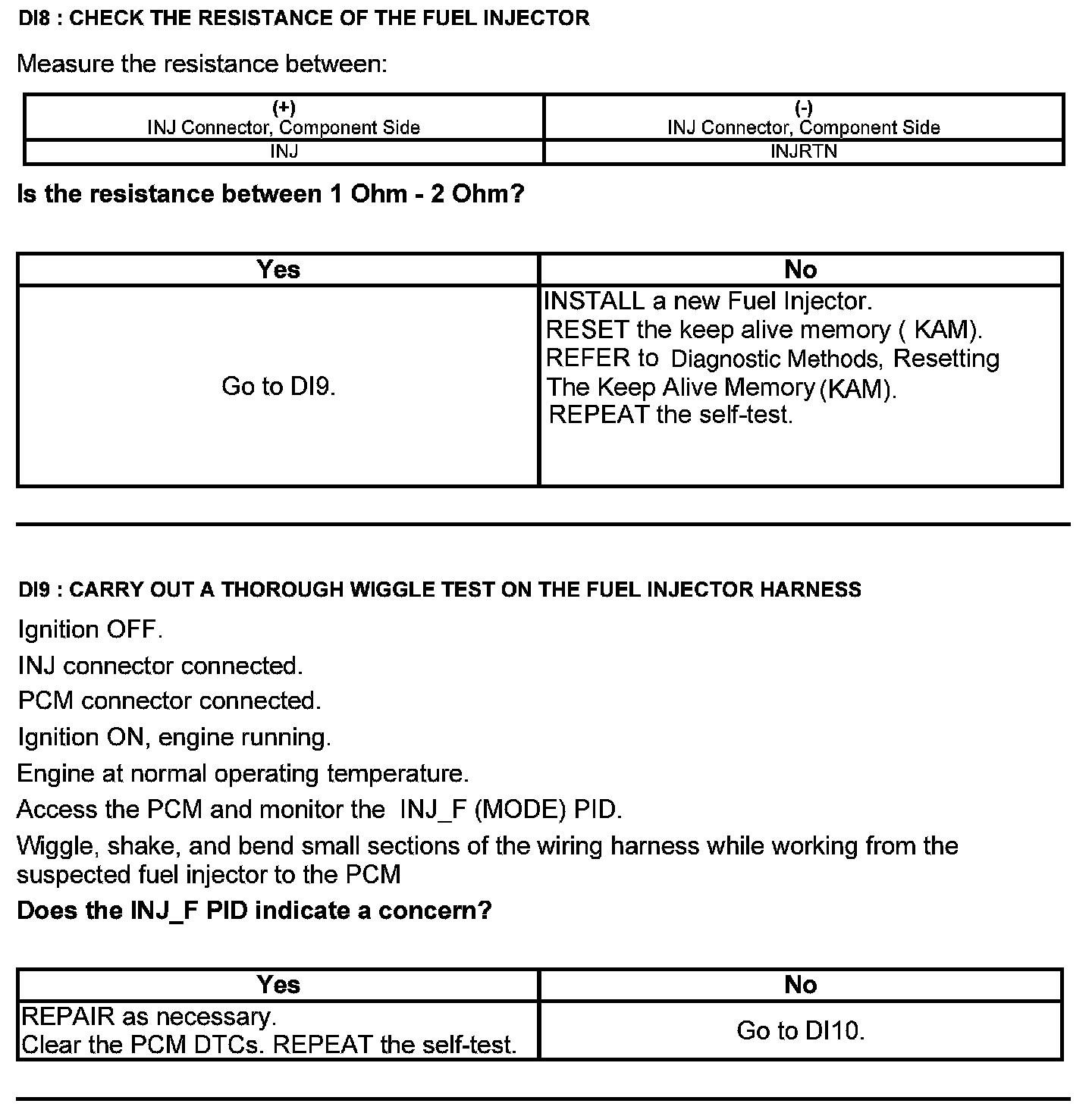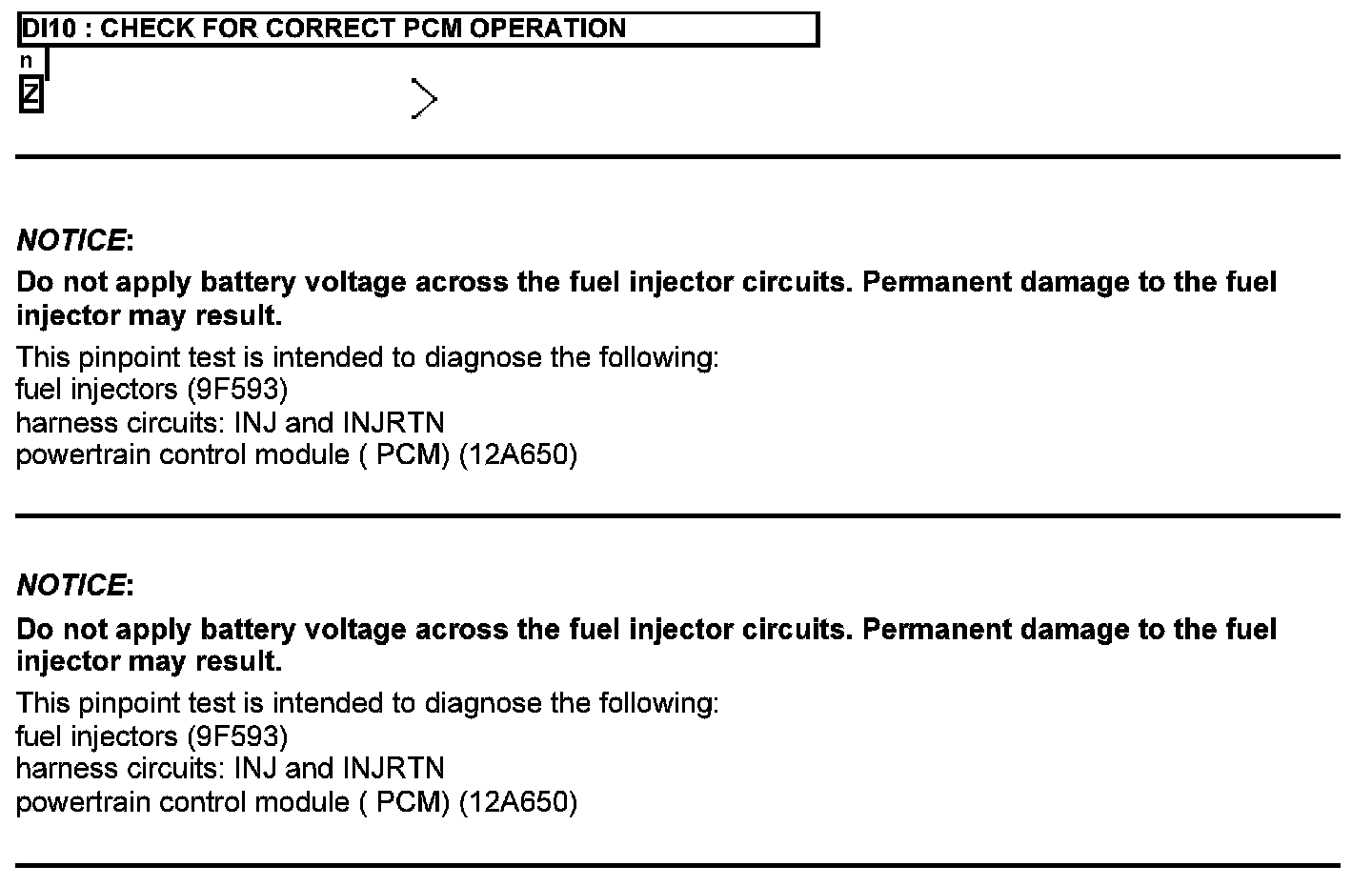 Test DI: Direct Fuel Injection Fuel Injector