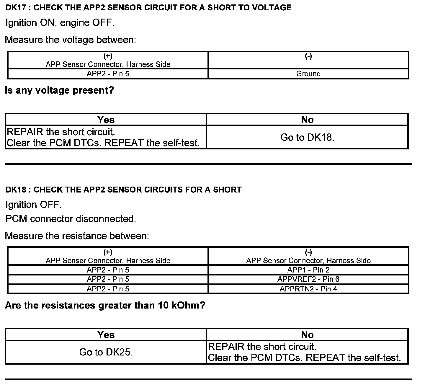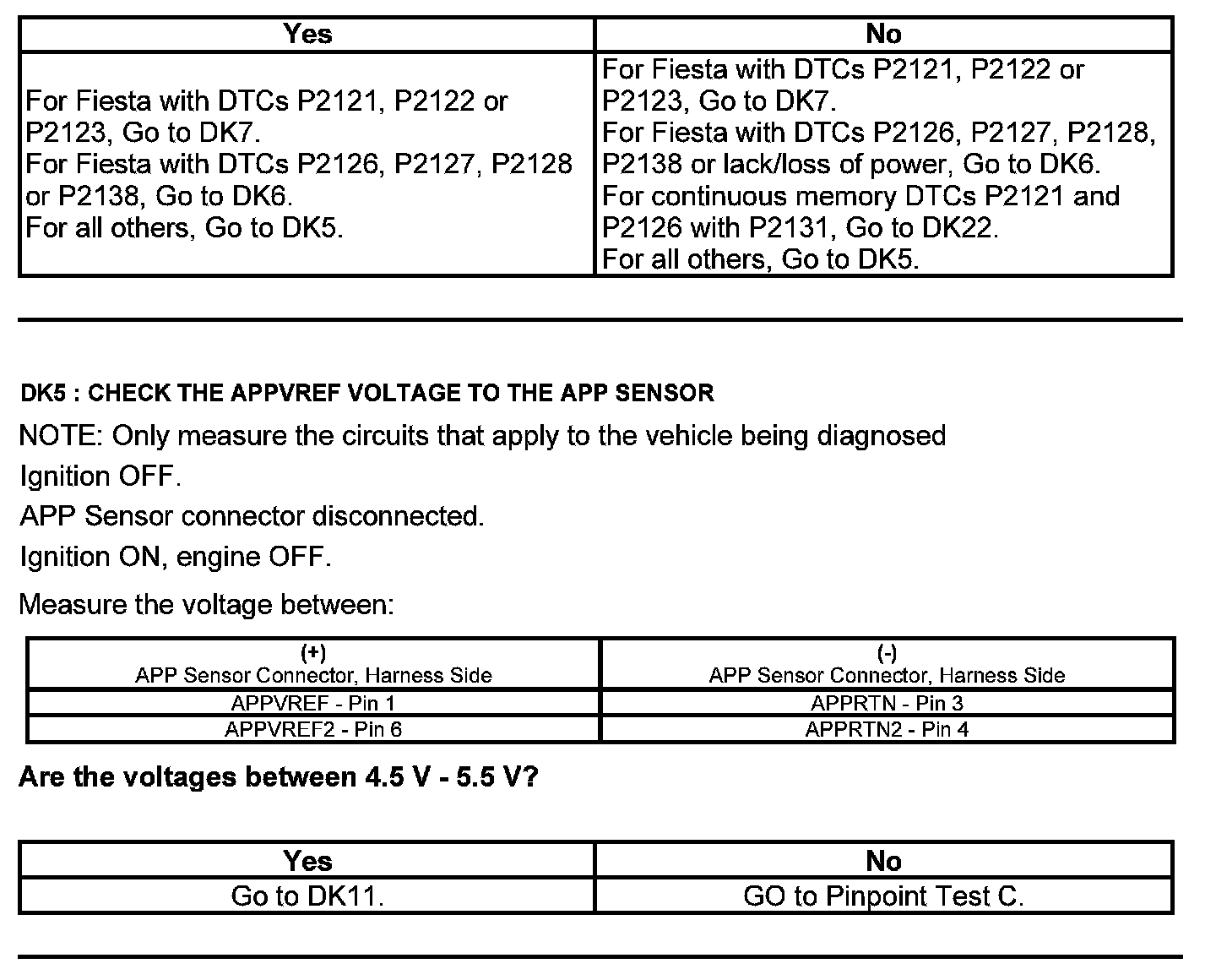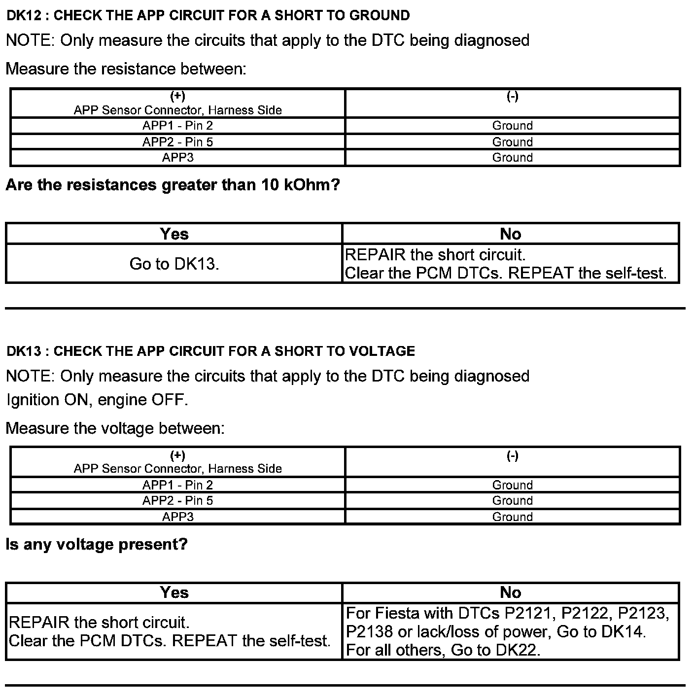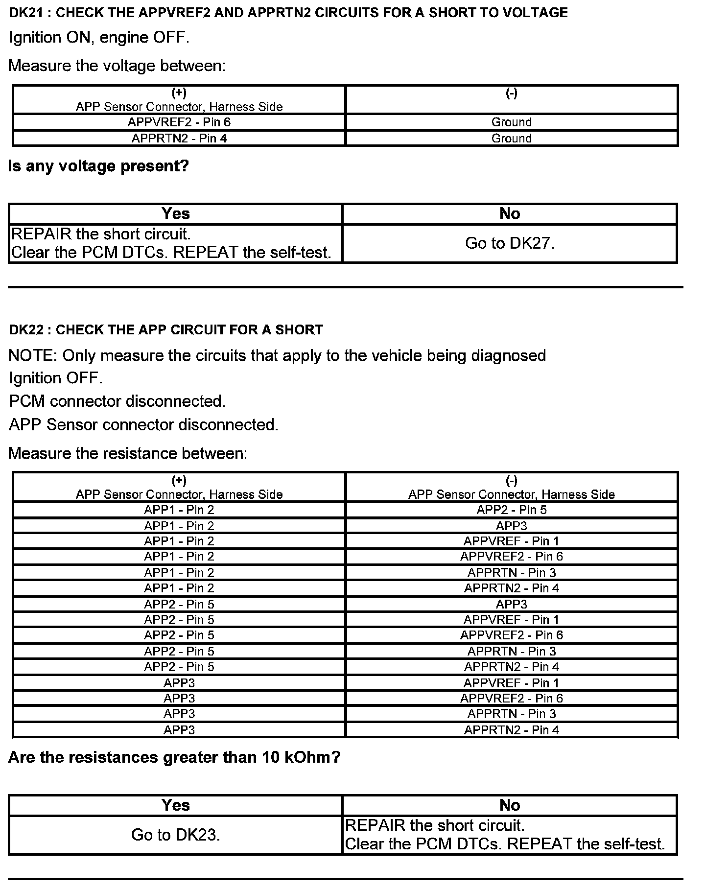 Home >> Ford >> 2012 >> Fusion FWD L4-2.5L >> Repair and Diagnosis >> Powertrain Management >> Computers and Control Systems >> Testing and Inspection >> Pinpoint Tests >> Test DK: Accelerator Pedal Position (APP) Sensor >> Automatic Transmission