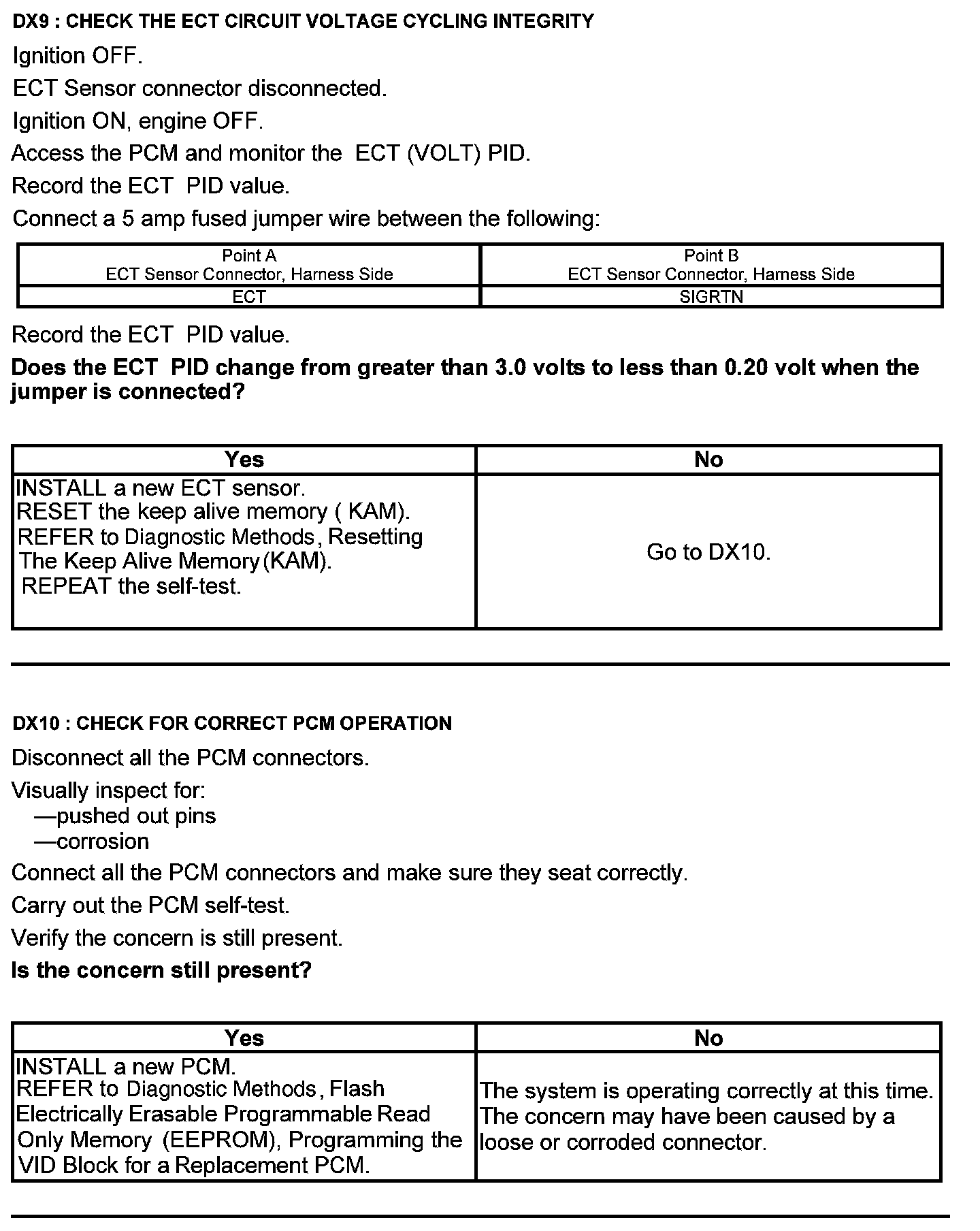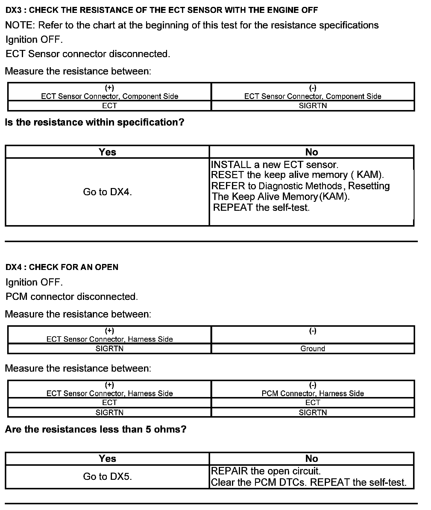 Test DX: Engine Coolant Temperature (ECT) Sensor