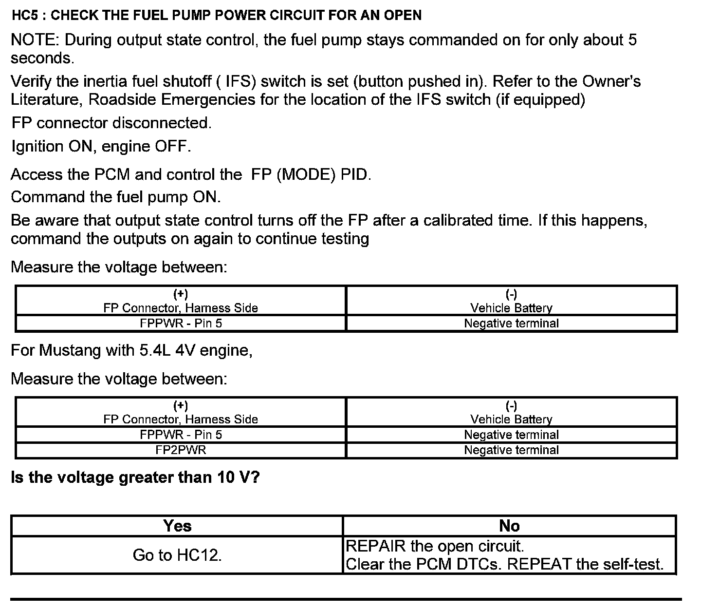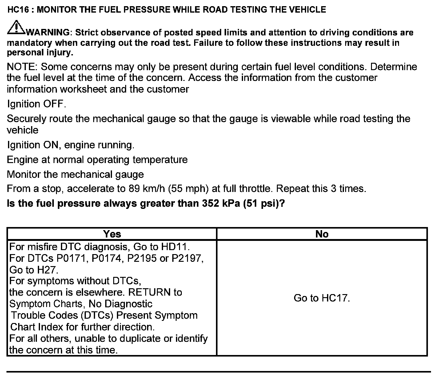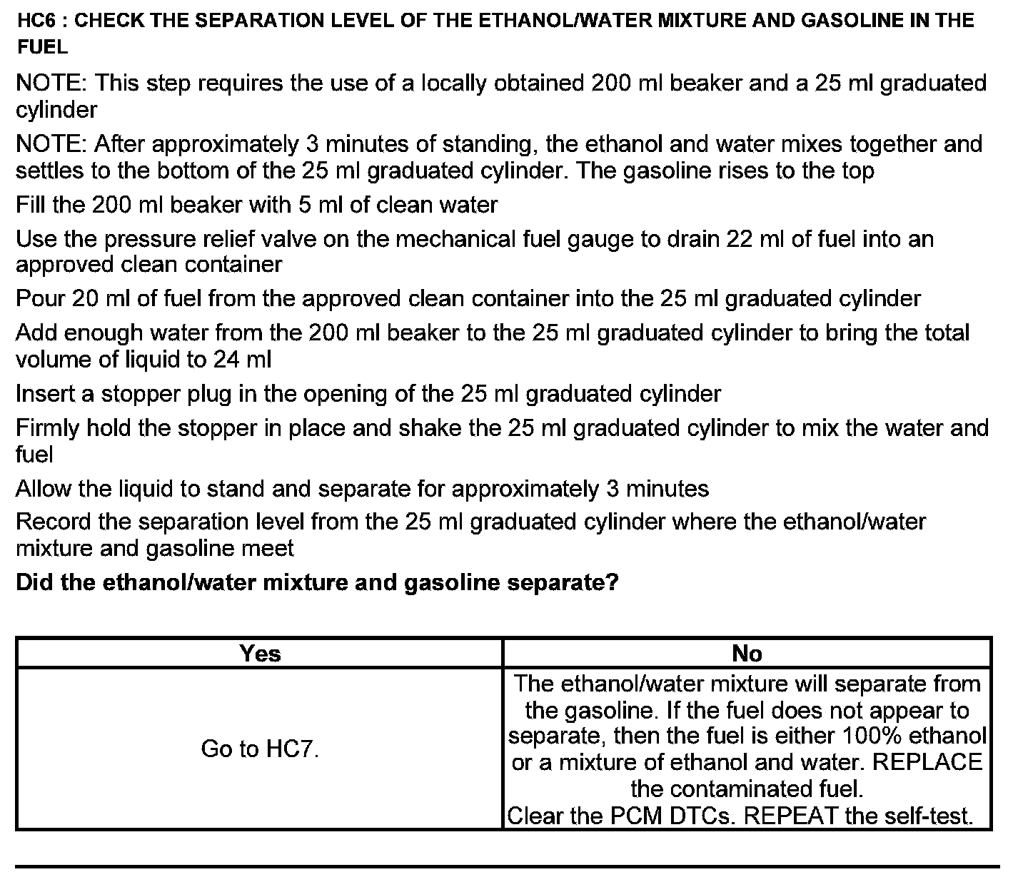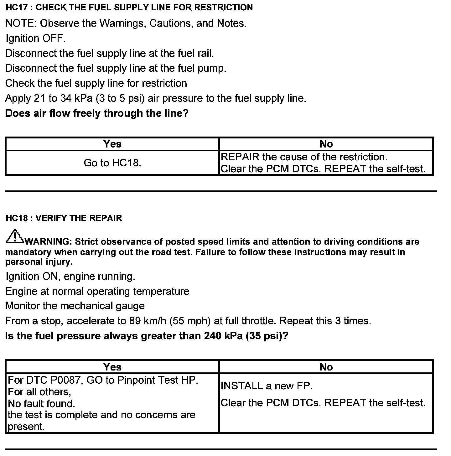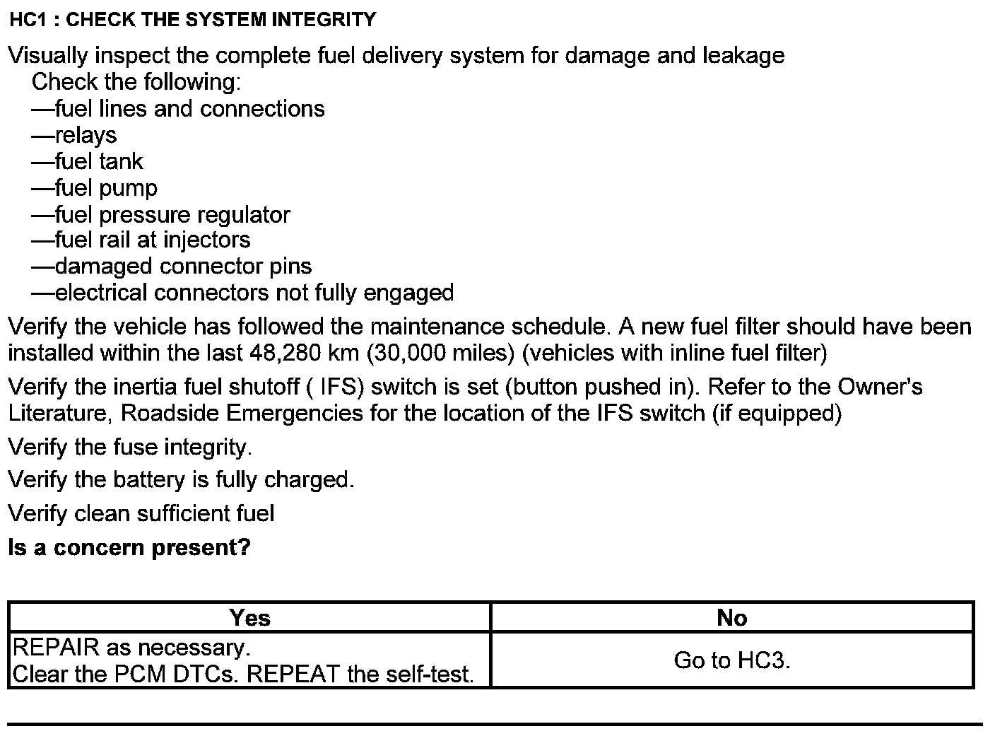 Test HC: Fuel Delivery System