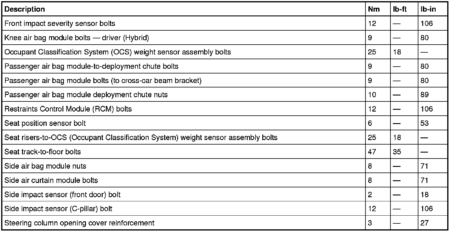 Torque Specifications