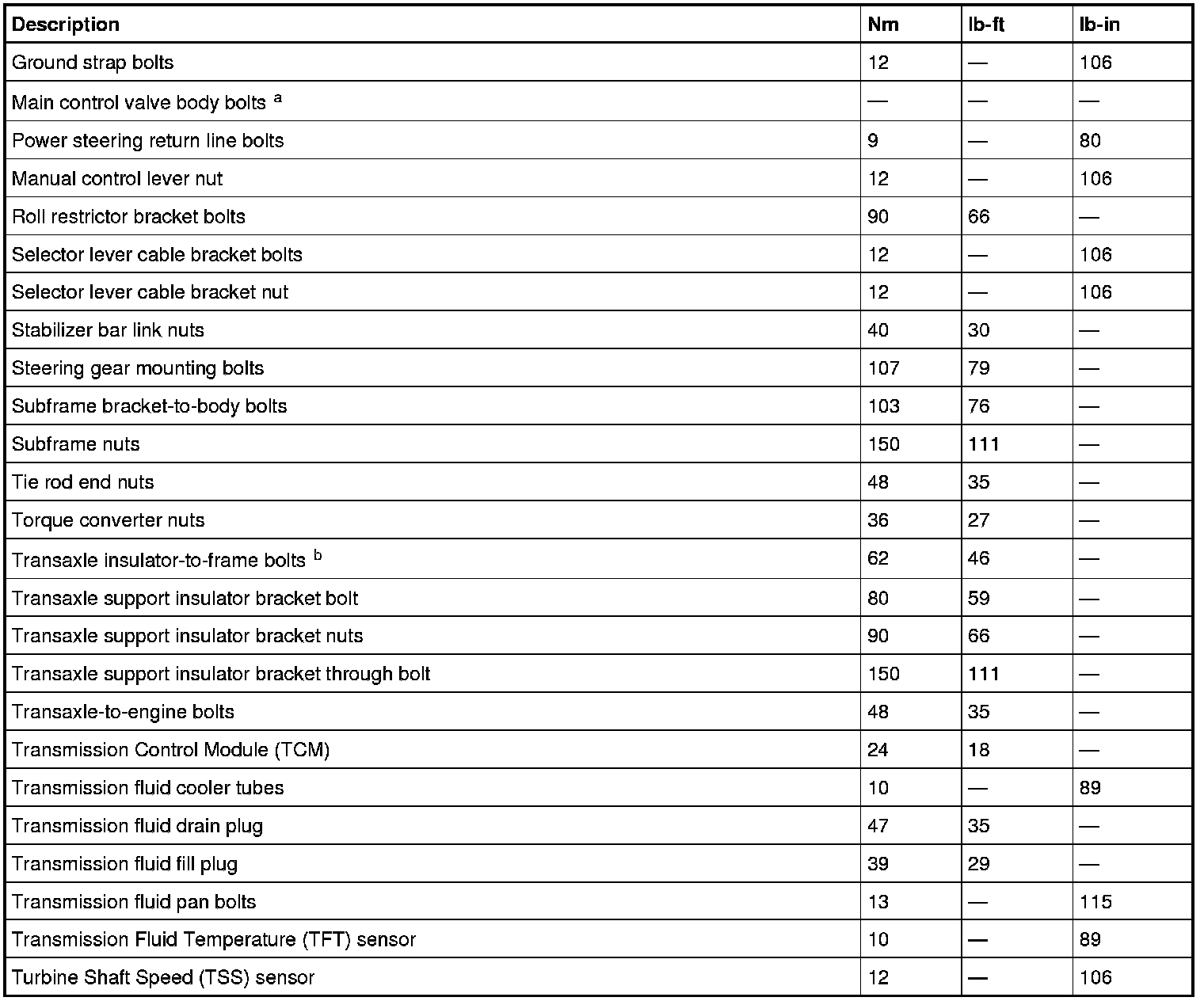 Home >> Ford >> 2012 >> Fusion FWD L4-2.5L >> Repair and Diagnosis >> Specifications >> Mechanical Specifications >> Automatic Transmission/Transaxle >> System Specifications >> Automatic Transaxle/Transmission - Aisin AW21