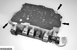 6. Position the solenoid body assembly on the valve body and install the 2 bolts.