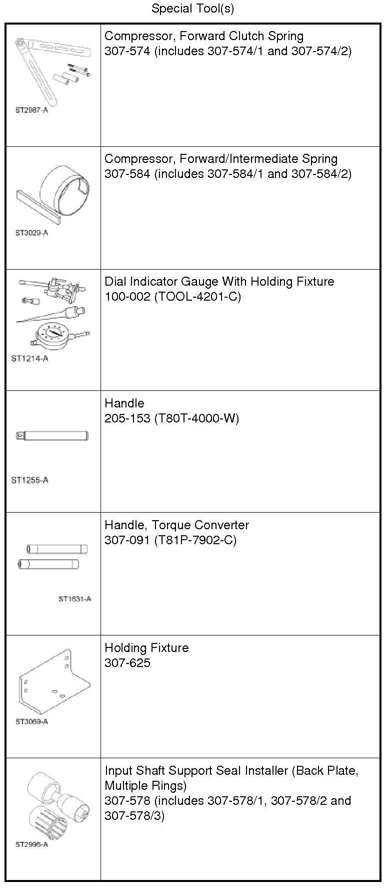 24. Remove the Forward Clutch Spring Compressor 307-574/1 and the 2-6 Piston Return Spring Compressor 307-633.