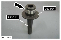 3. Using the Handle 205-153 and the Bushing Installer 307-664, install the new bushing in the transaxle case.