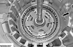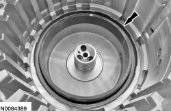 20. Install the 2-6 Piston Return Spring Compressor 307-633/2 on the transaxle case to center the intermediate (2, 6) clutch return spring.
