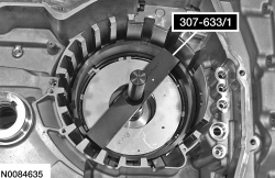 16. Using Forward/Intermediate Spring Compressor 307-584/1, push the intermediate (2, 6) clutch piston into the clutch cylinder by hand.