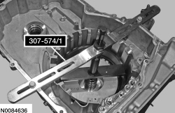 22. Install Forward Clutch Spring Compressor 307-574/1 on the transaxle case.