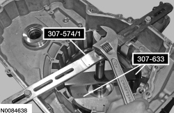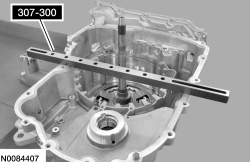 33. Install the Shim Selection Gauge 307-300 on the transaxle case.
