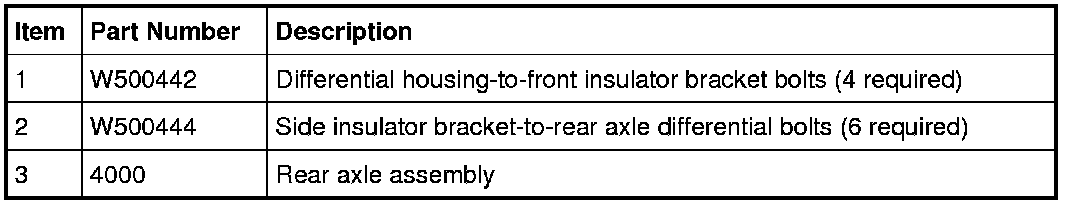 5. Remove the 3 RH side insulator bracket-to-rear axle differential bolts.