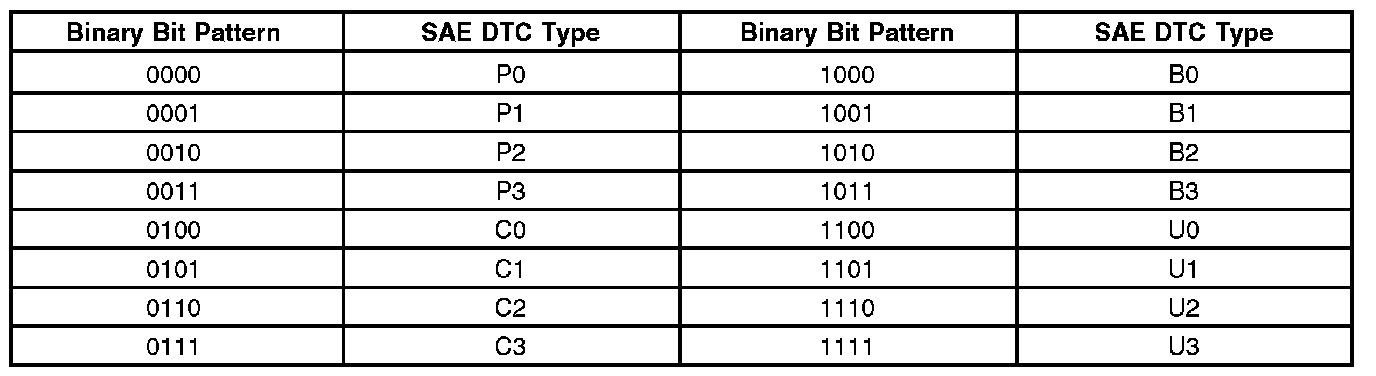 A list of failure type bytes is defined by SAE J2012 but is not described here because the PCM does not use the failure type byte.
