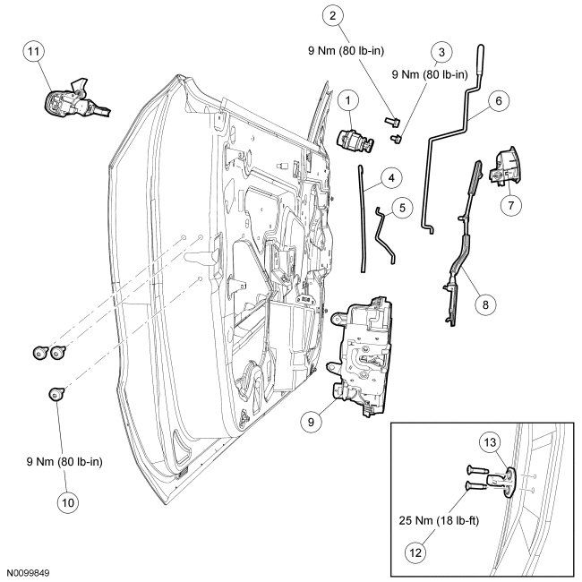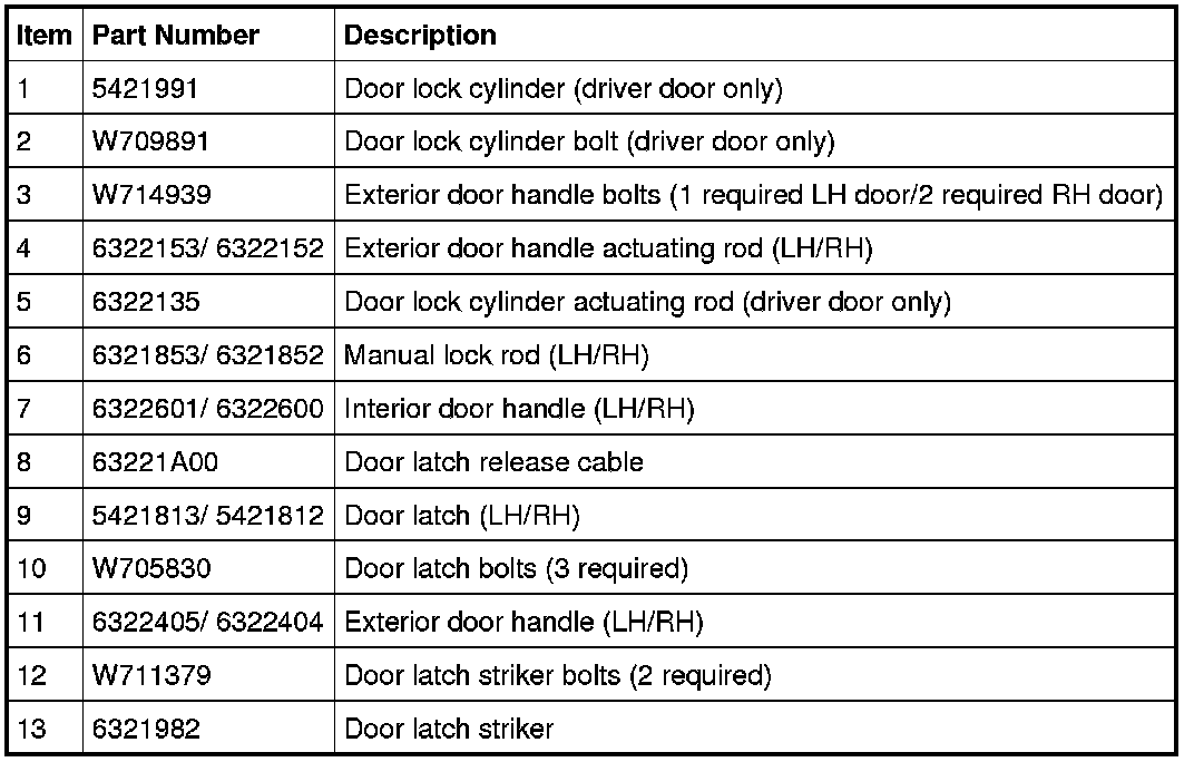Front Door Handles, Locks and Latches - Exploded View