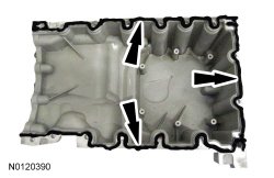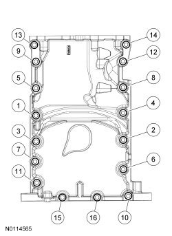 35. Install the remaining oil pan bolts and tighten in the sequence shown.