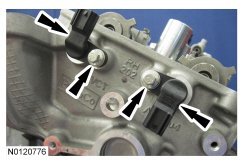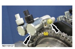 90. NOTE: The 2 VCT (Variable Camshaft Timing) oil control solenoids are removed for clarity.