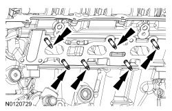 103. Install the RH valve train oil tube and the 3 bolts and tighten in 2 stages.