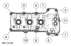 NOTE: If the valve cover is not installed and the fasteners tightened within 4 minutes, the sealant must be removed and the sealing area cleaned. To clean the sealing area, use silicone gasket remover and metal surface prep. Failure to follow this procedure can cause future oil leakage.