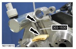 14. Assemble the 2 LH VCT (Variable Camshaft Timing) assemblies and the LH secondary timing chain.