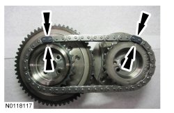 25. Assemble the 2 LH VCT (Variable Camshaft Timing) assemblies and the LH secondary timing chain.