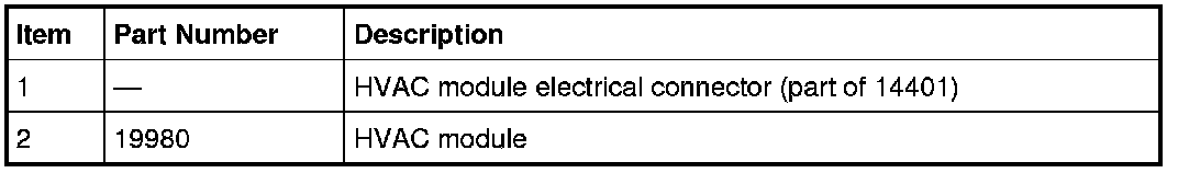 2. NOTE: Vehicles equipped with Electronic Automatic Temperature Control (EATC) have 2 HVAC module electrical connectors. Vehicles equipped with Electronic Manual Temperature Control (EMTC) have 1 HVAC module electrical connector.