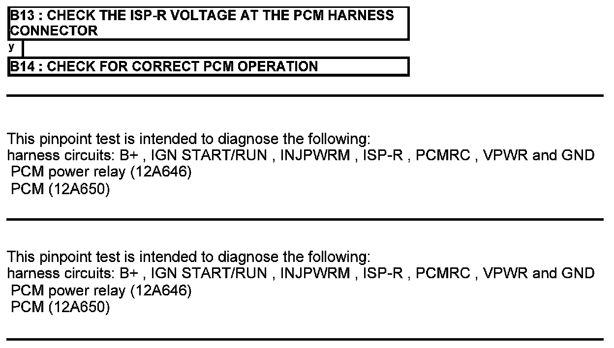 Home >> Ford >> 2012 >> Mustang V6-3.7L >> Repair and Diagnosis >> Powertrain Management >> Computers and Control Systems >> Testing and Inspection >> Pinpoint Tests >> Test B: Powertrain Control Module (PCM) Power Relay
