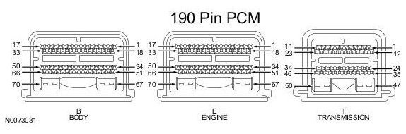 Powertrain Control Module (PCM) Connector - For PCM connector views or reference values, refer to Reference Values.