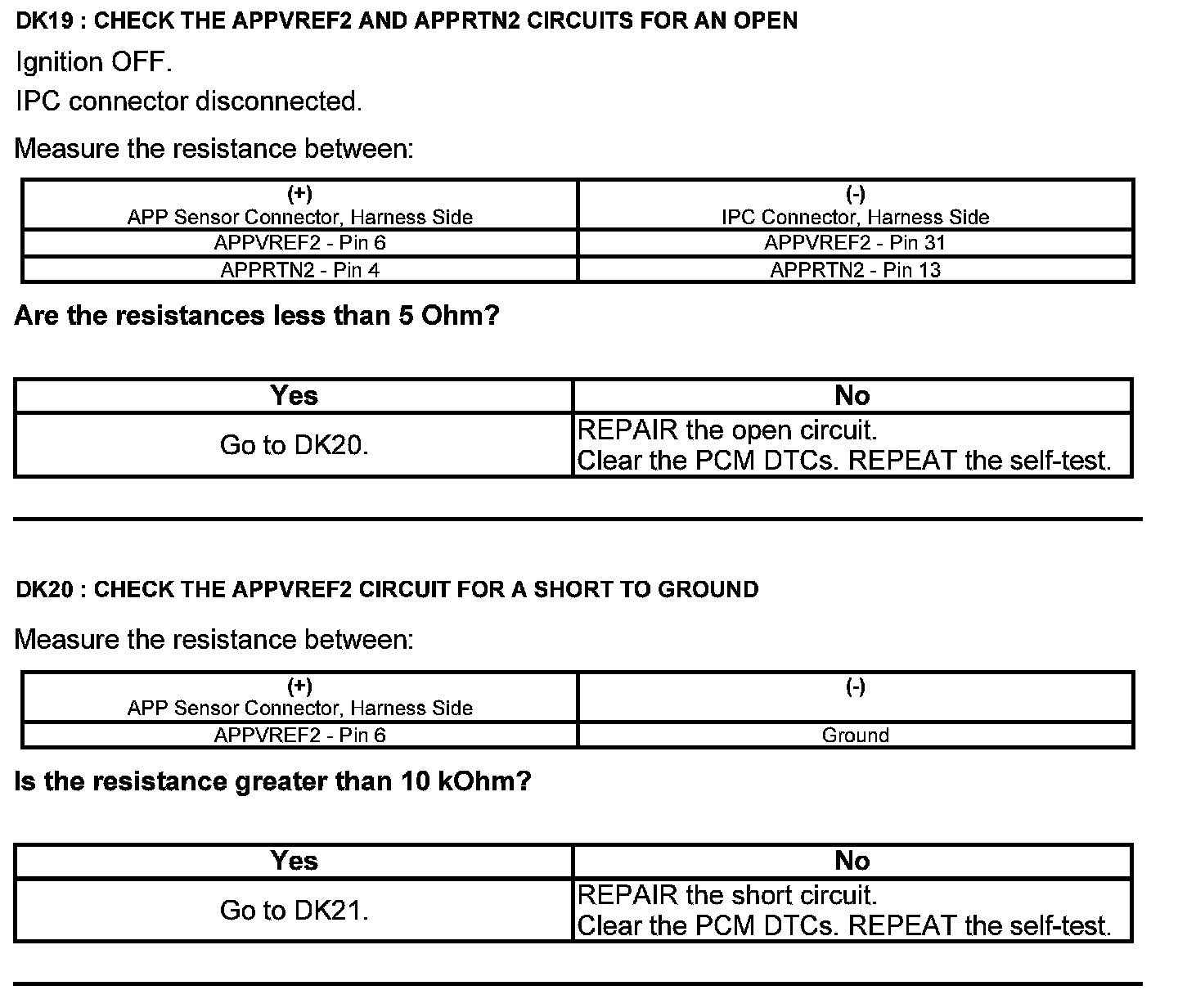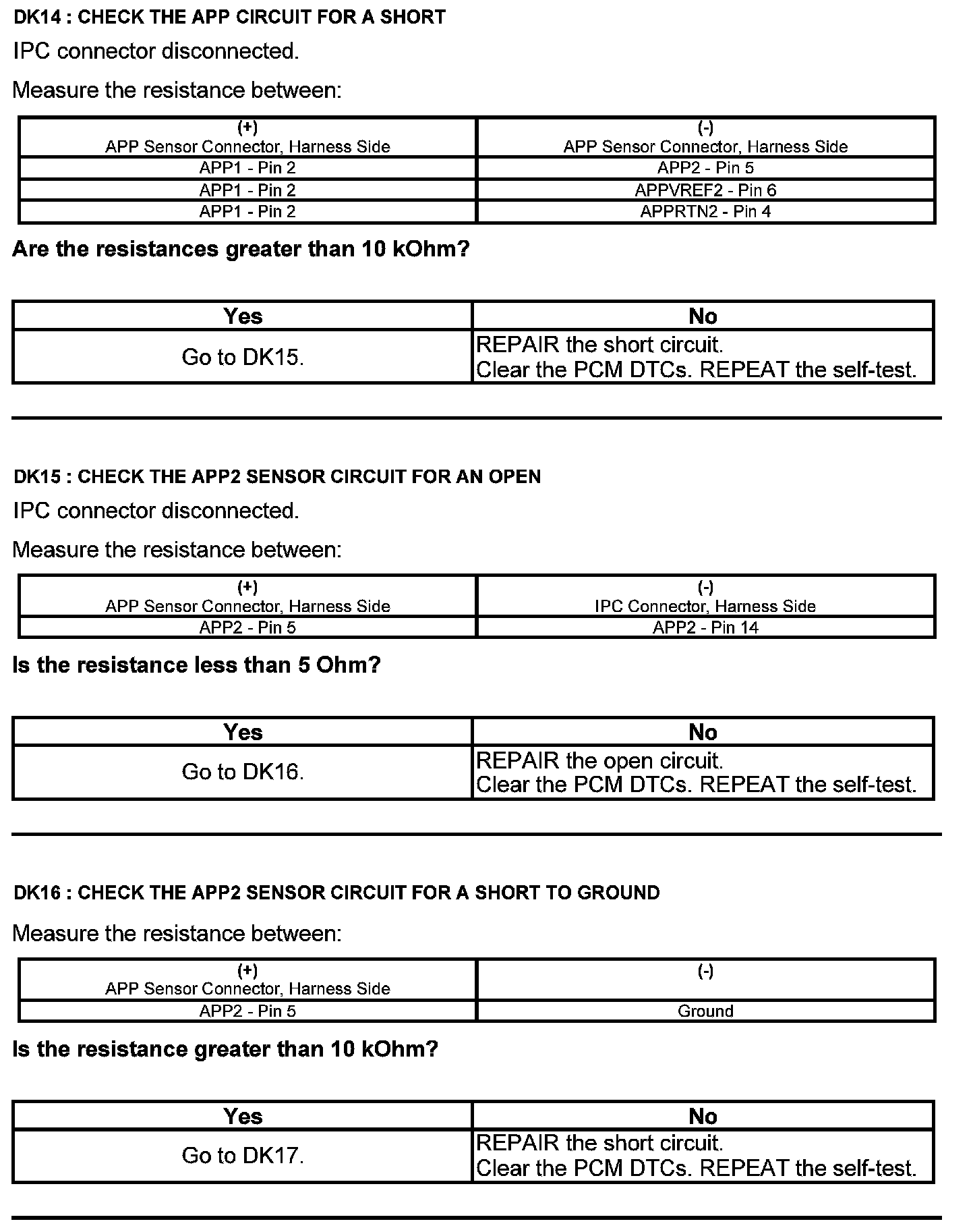Home >> Ford >> 2012 >> Mustang V6-3.7L >> Repair and Diagnosis >> Powertrain Management >> Computers and Control Systems >> Testing and Inspection >> Pinpoint Tests >> Test DK: Accelerator Pedal Position (APP) Sensor