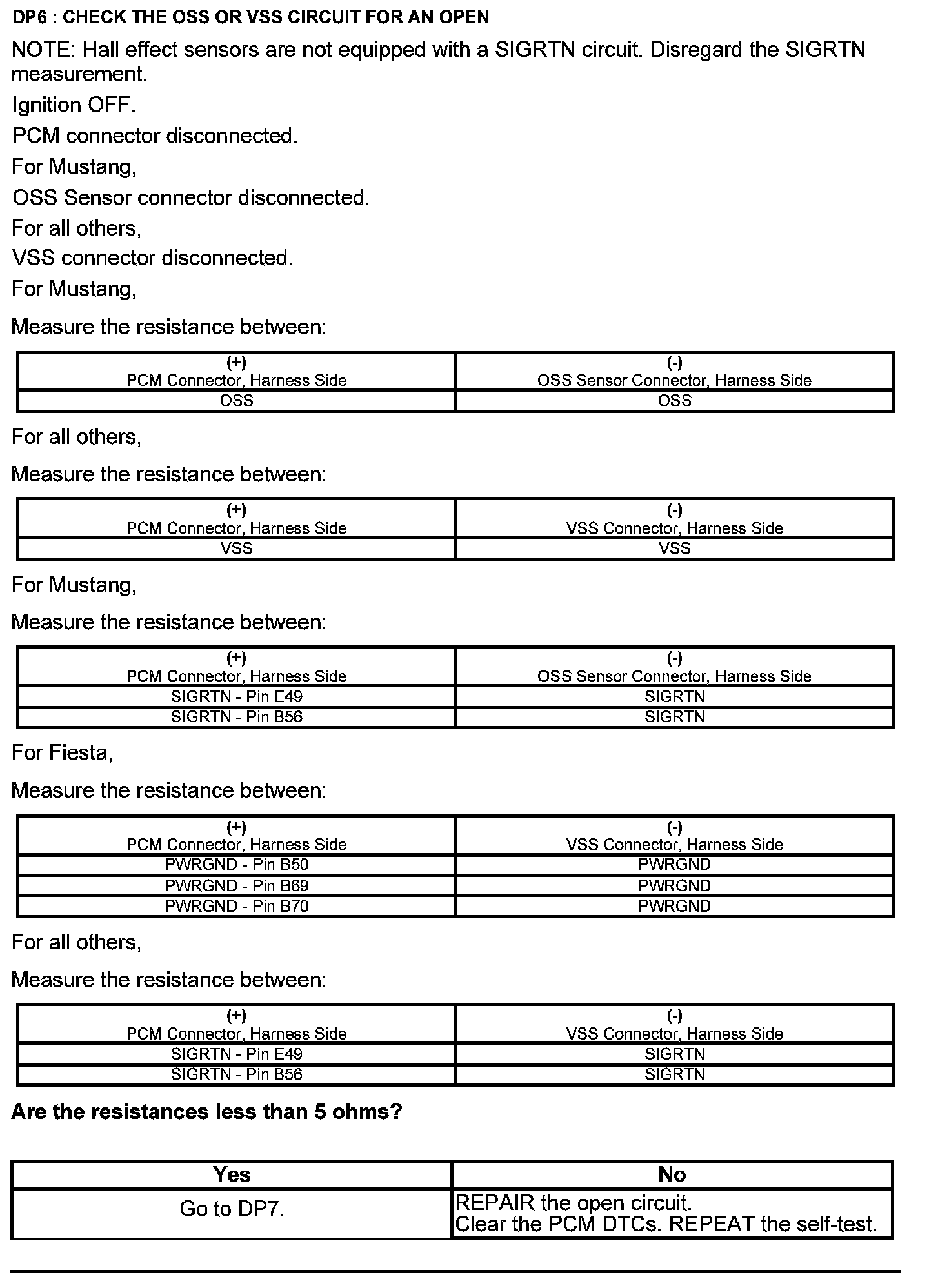 Home >> Ford >> 2012 >> Mustang V6-3.7L >> Repair and Diagnosis >> Powertrain Management >> Computers and Control Systems >> Testing and Inspection >> Pinpoint Tests >> Test DP: Output Shaft Speed (OSS) Sensor/Vehicle Speed Sensor ( VSS)