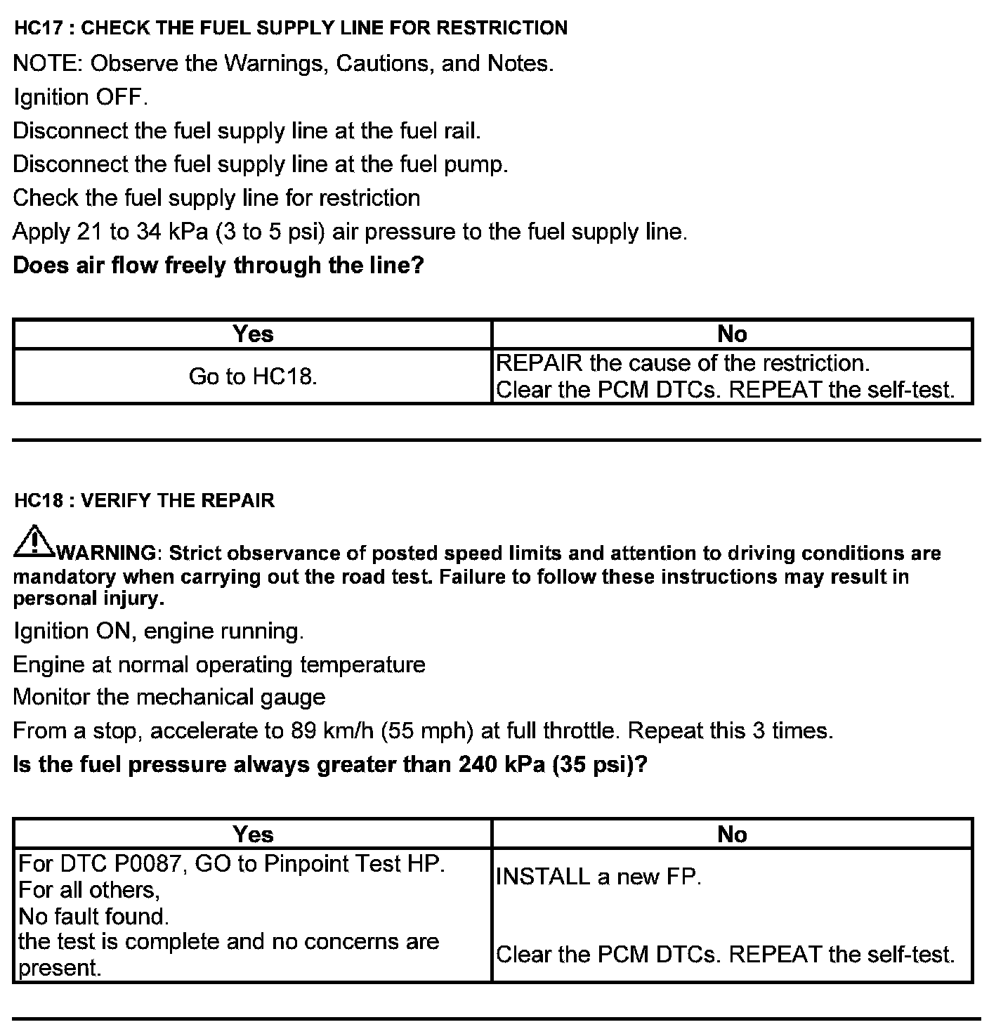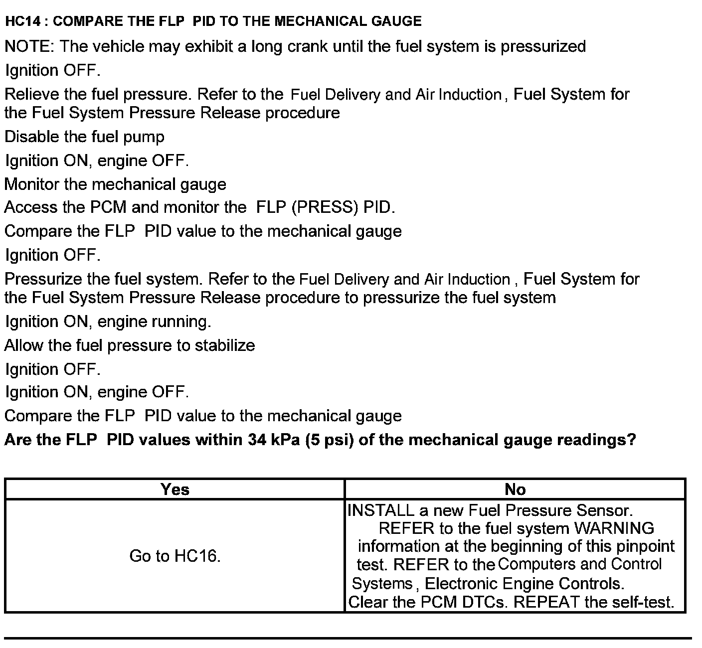 Test HC: Fuel Delivery System
