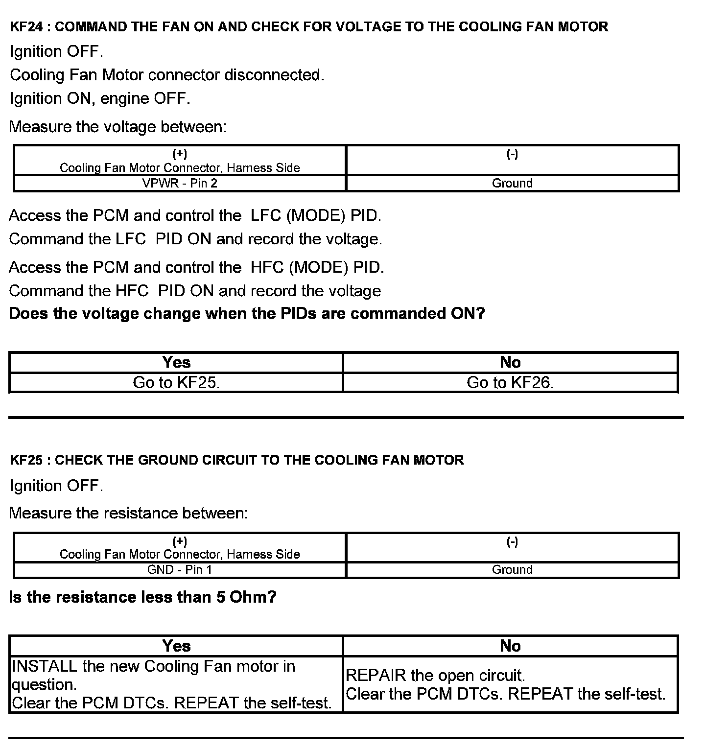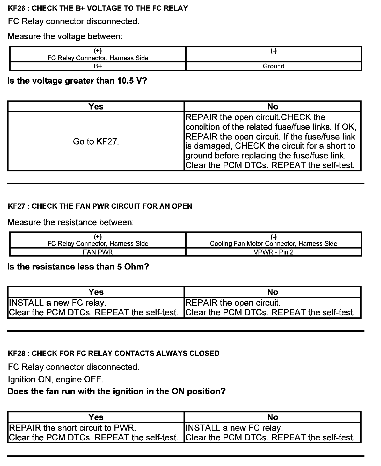 Home >> Ford >> 2012 >> Mustang V6-3.7L >> Repair and Diagnosis >> Powertrain Management >> Computers and Control Systems >> Testing and Inspection >> Pinpoint Tests >> Test KF: Fan Control Relays