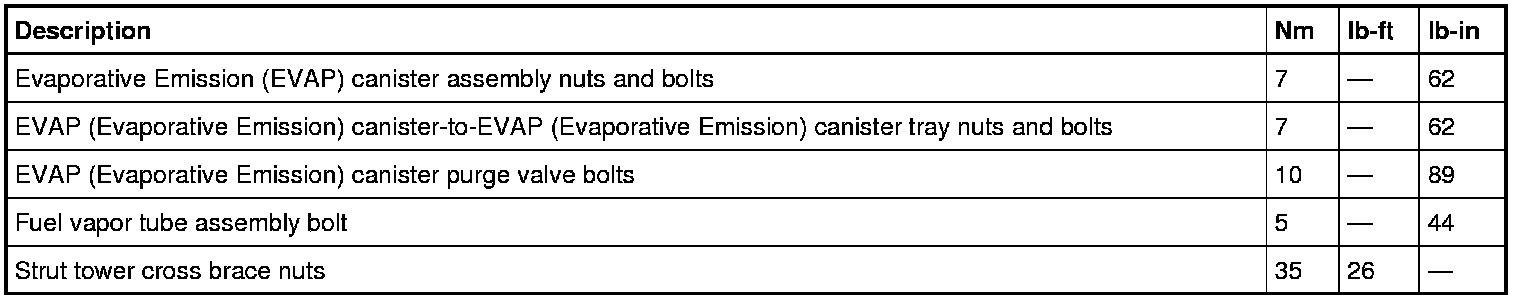 Evaporative Emissions System: Specifications