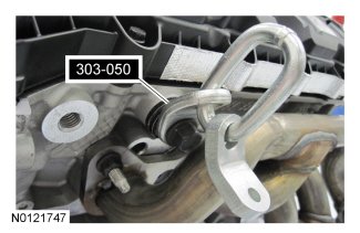 9. NOTE: It may be necessary to install washers between the Engine Lifting Bracket and the cylinder head to prevent the Engine Lifting Bracket from contacting the valve cover while supporting the engine.