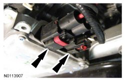 17. Disconnect the 2 Electronic Power Assist Steering (EPAS) electrical connectors and the pin-type retainer.
