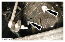 Tighten the 2 nuts for the crossmember brace to 65 Nm (48 lb-ft).