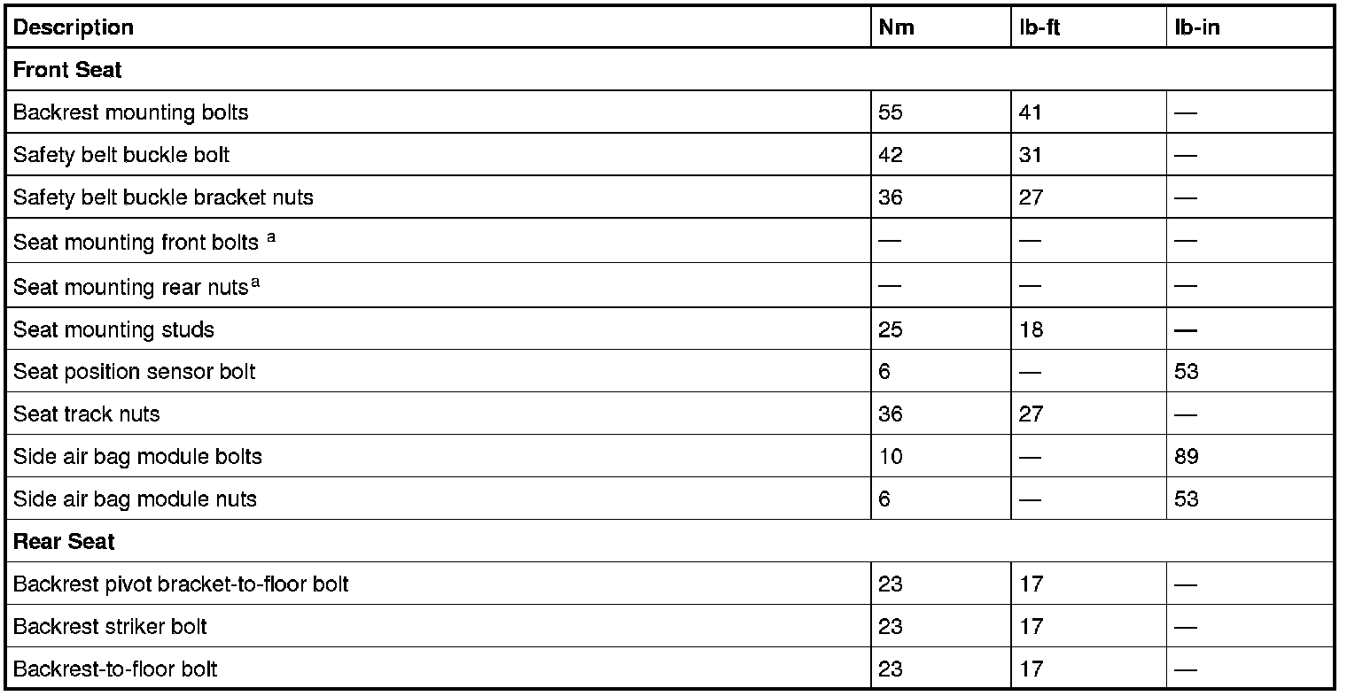 a Refer to the procedure in Seats.