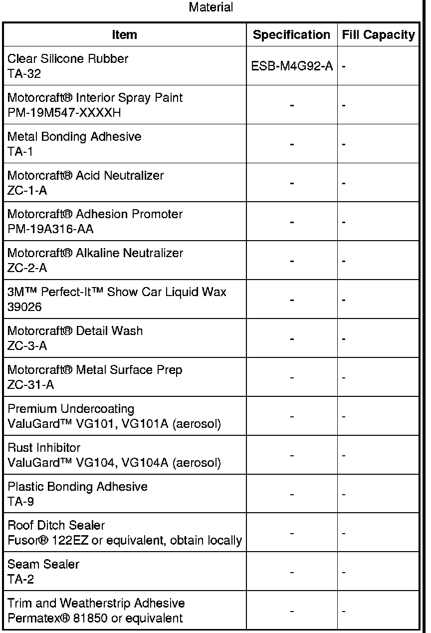 Home >> Ford >> 2012 >> Mustang V8-5.4L SC >> Repair and Diagnosis >> Body and Frame >> Specifications >> Mechanical Specifications >> Body Repairs