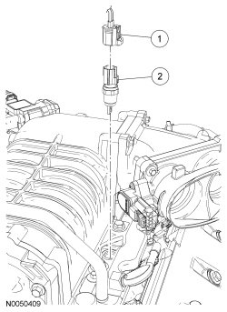 NOTE: Release the fuel system pressure prior to removing the fuel rail pressure and temperature sensor.
