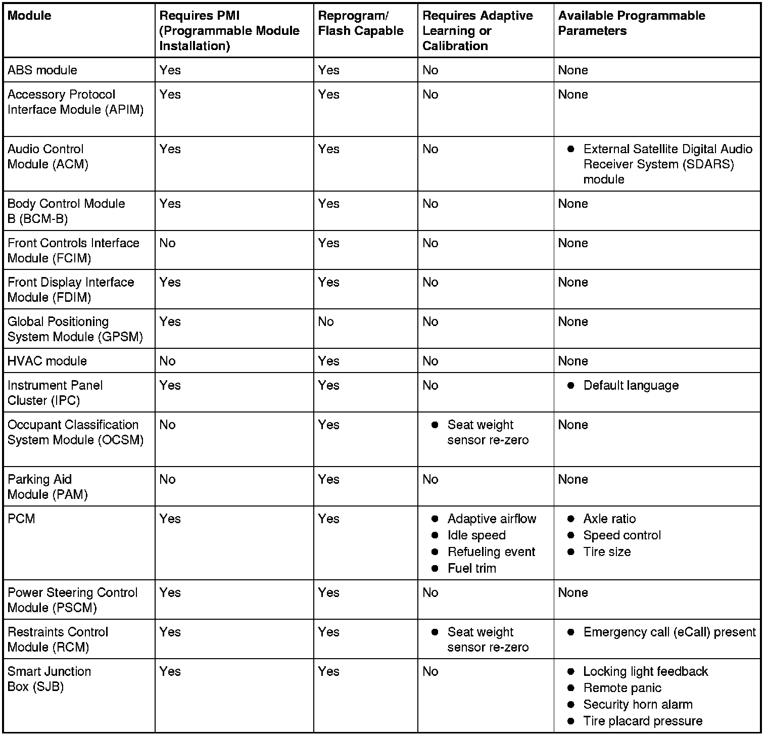 Programmable parameters are customer preference items that may be modified by the dealer via the scan tool or in some cases, modified by the customer following a procedure listed in the Owner's Literature. While many configuration options may exist for a module, only a few of these options are programmable parameters.