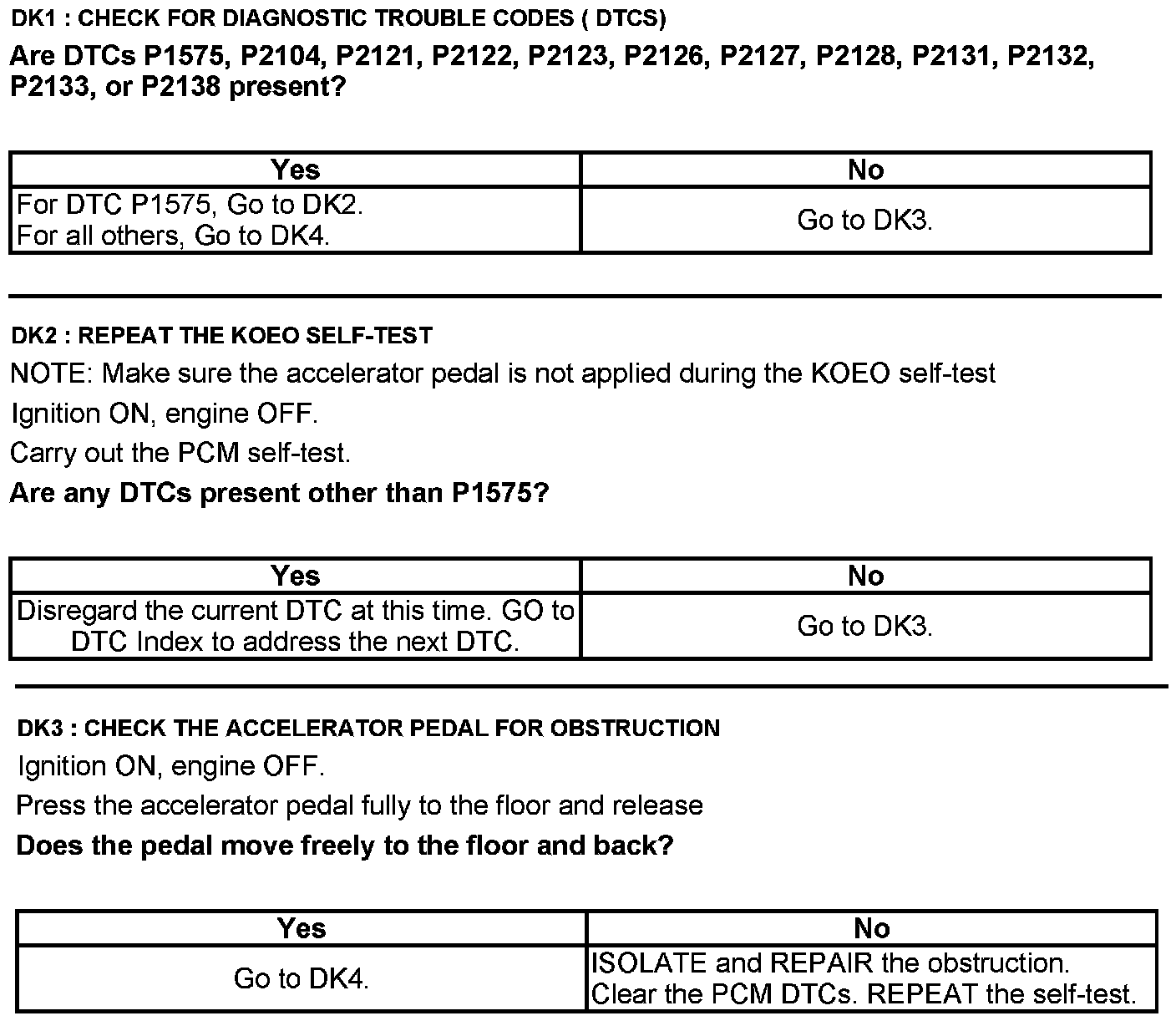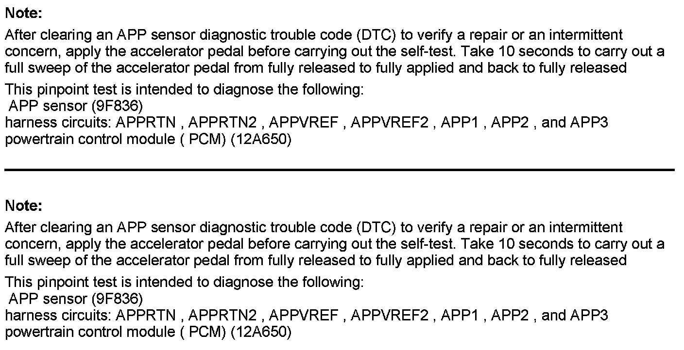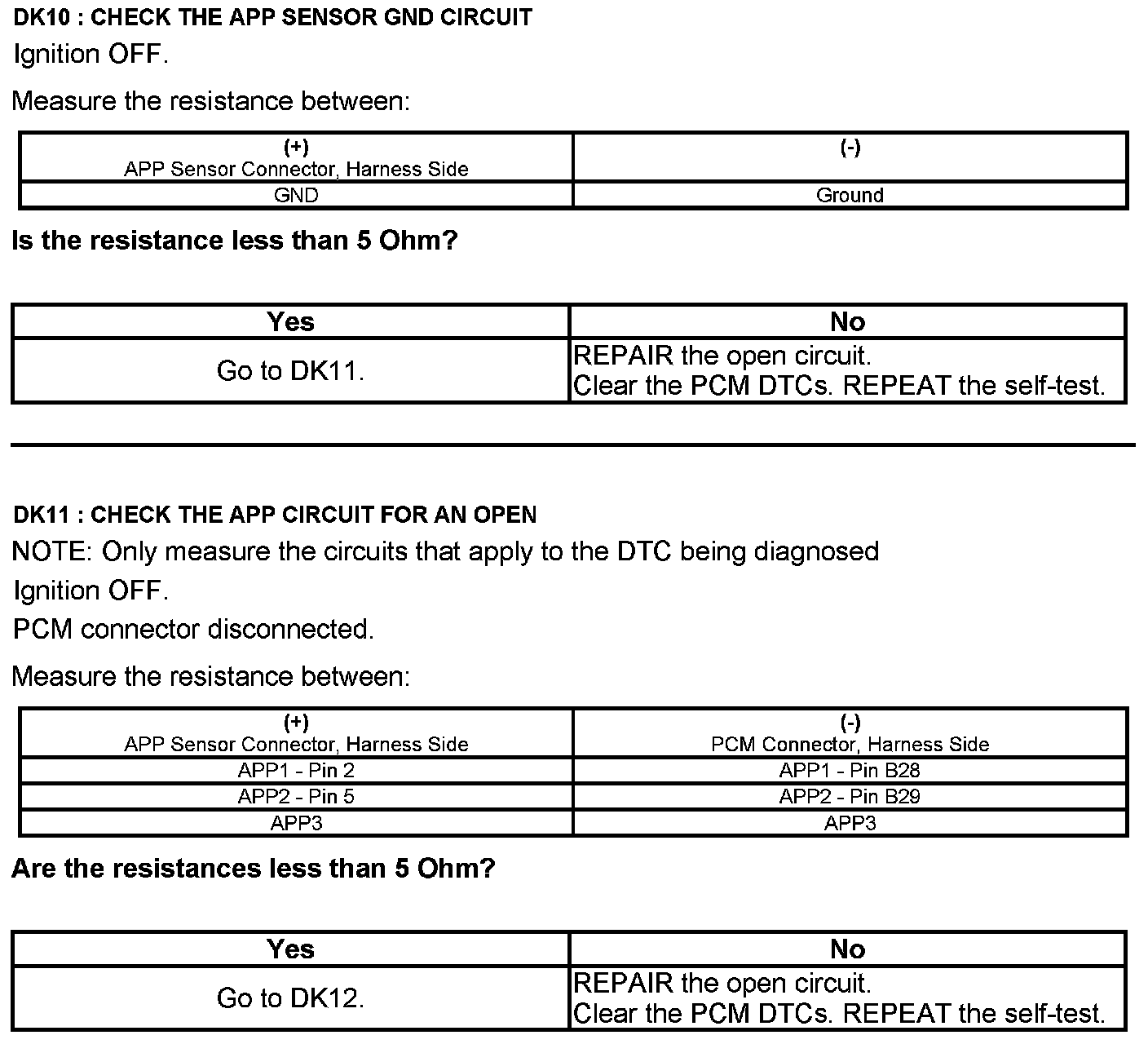 Home >> Ford >> 2012 >> Mustang V8-5.4L SC >> Repair and Diagnosis >> Powertrain Management >> Computers and Control Systems >> Testing and Inspection >> Pinpoint Tests >> Test DK: Accelerator Pedal Position (APP) Sensor