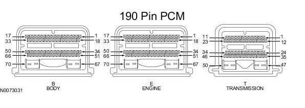 Powertrain Control Module (PCM) Connector - For PCM connector views or reference values, refer to Reference Values.