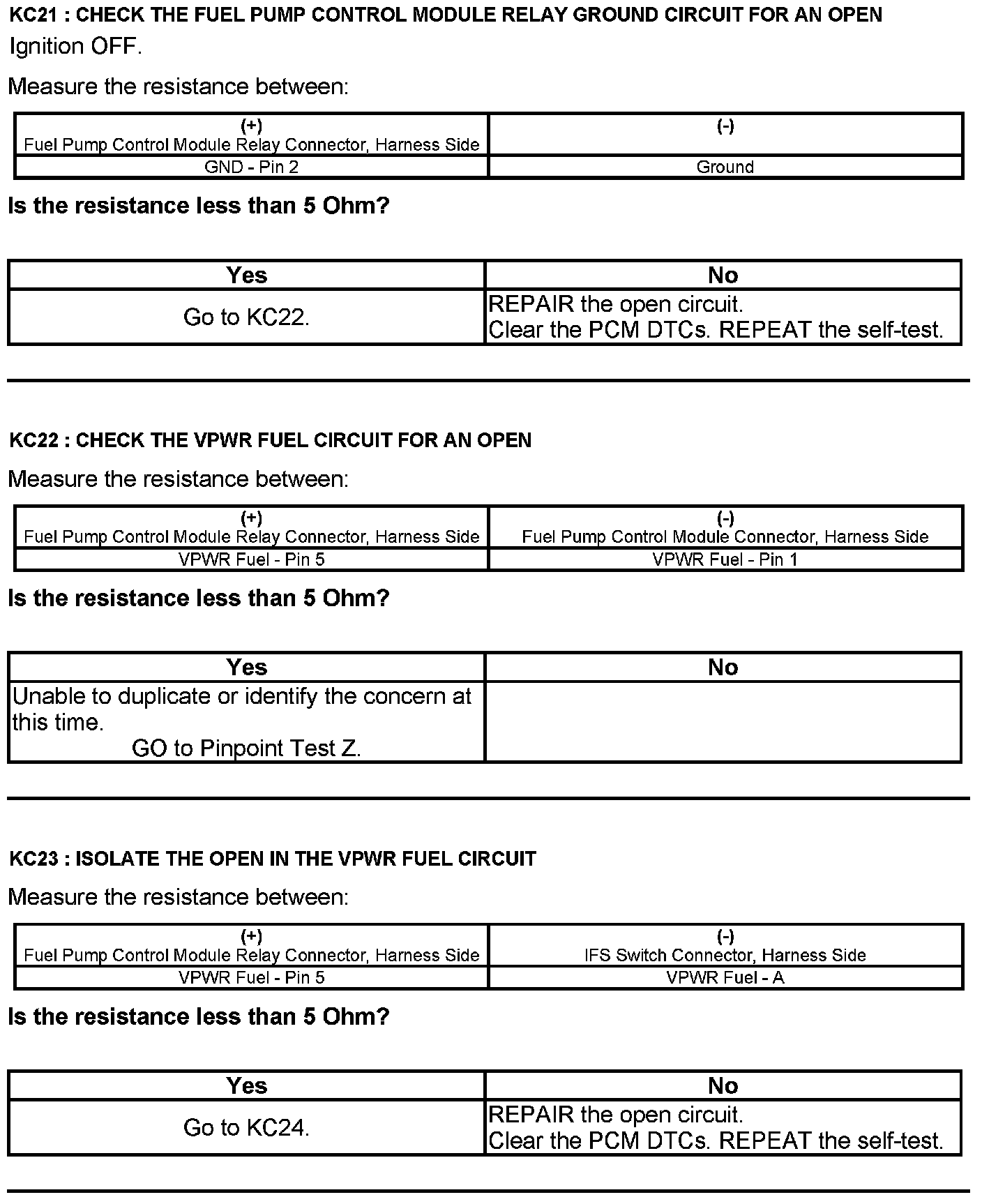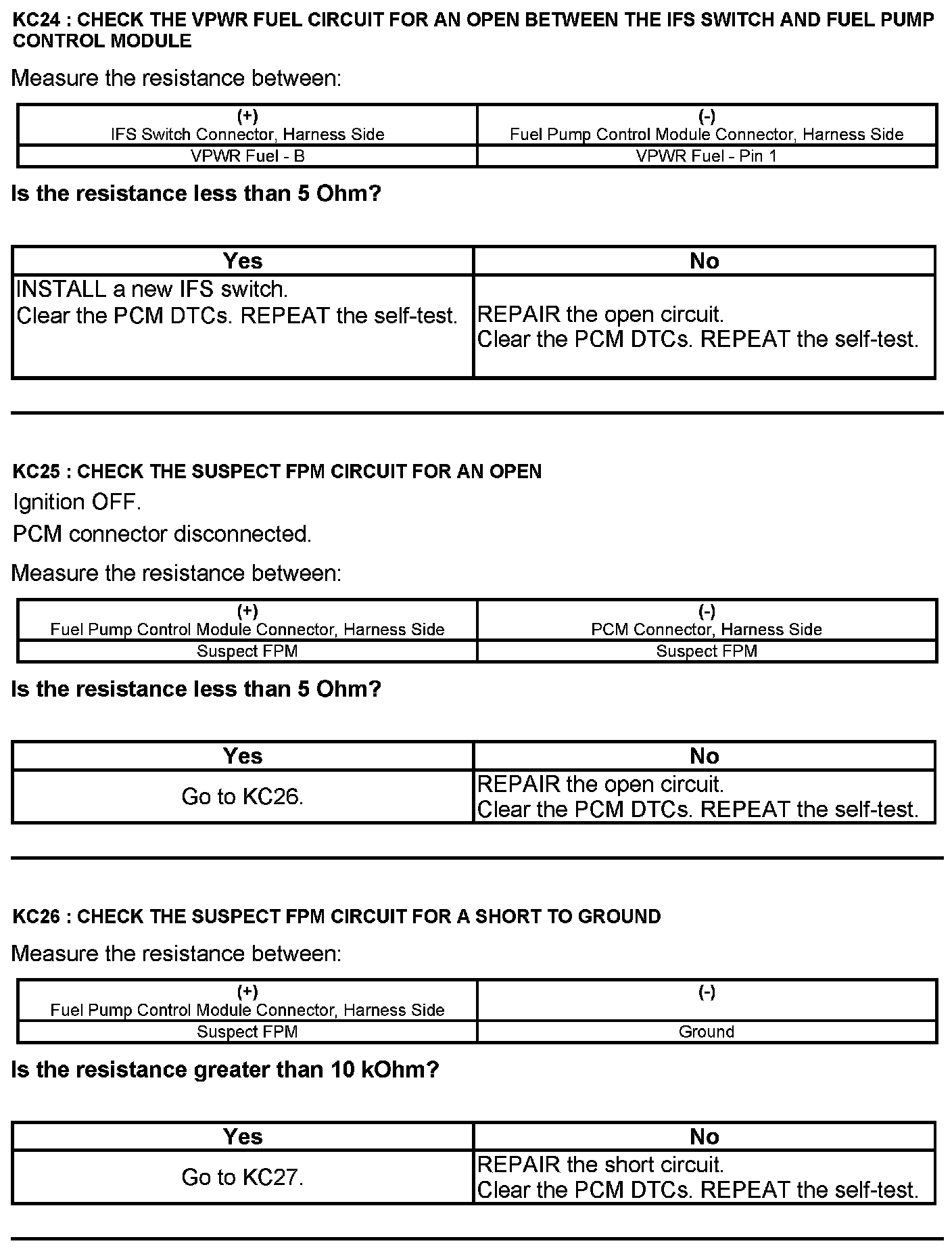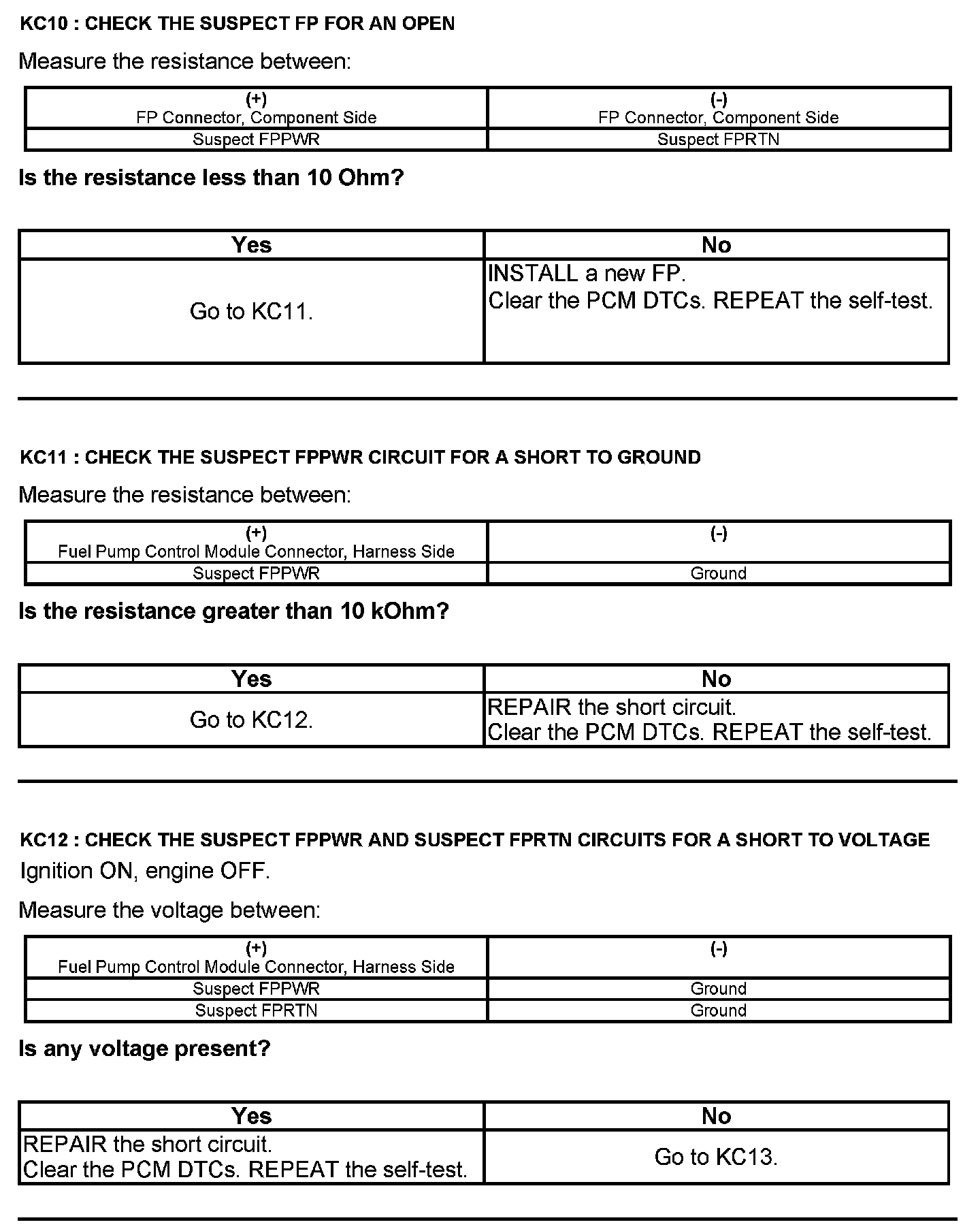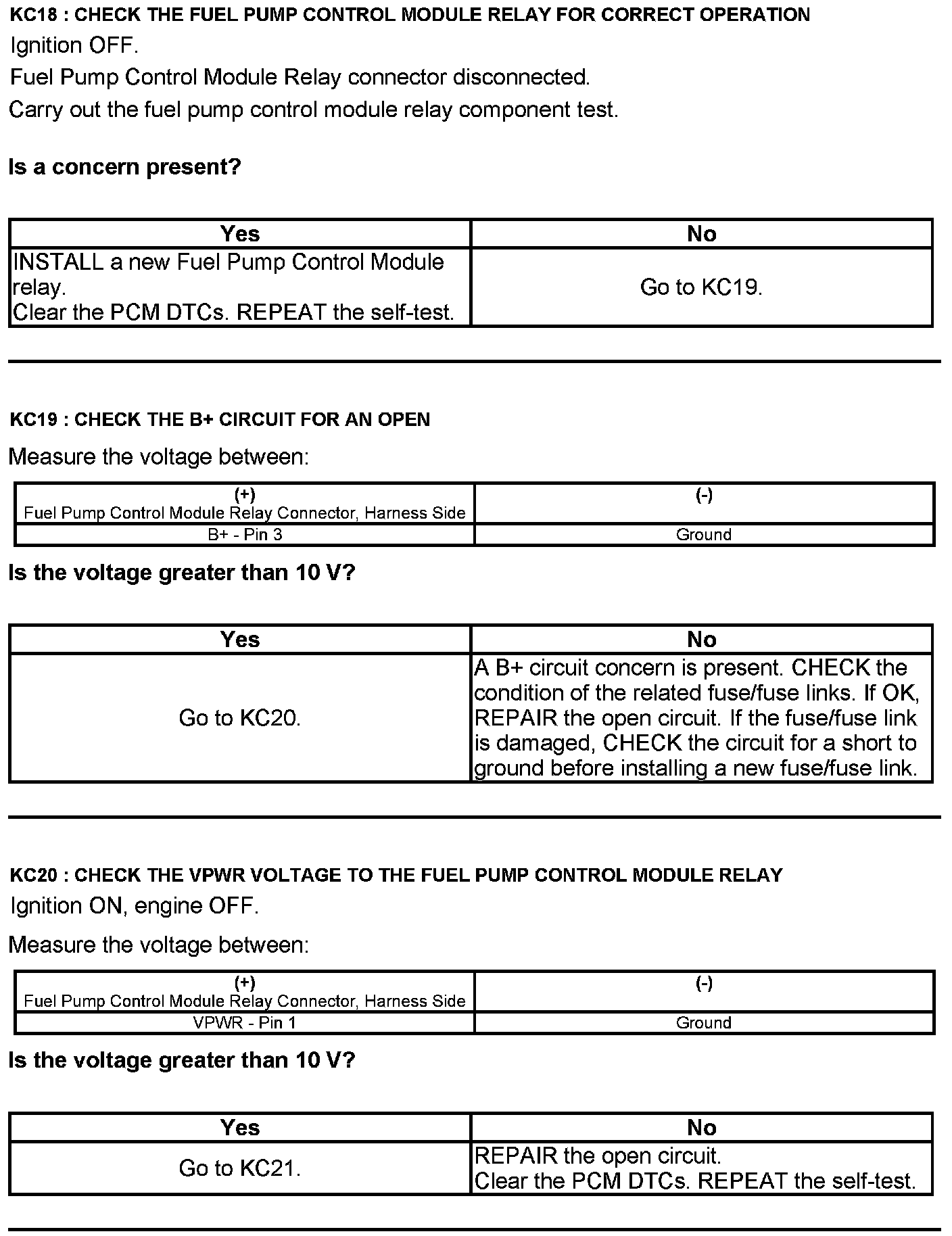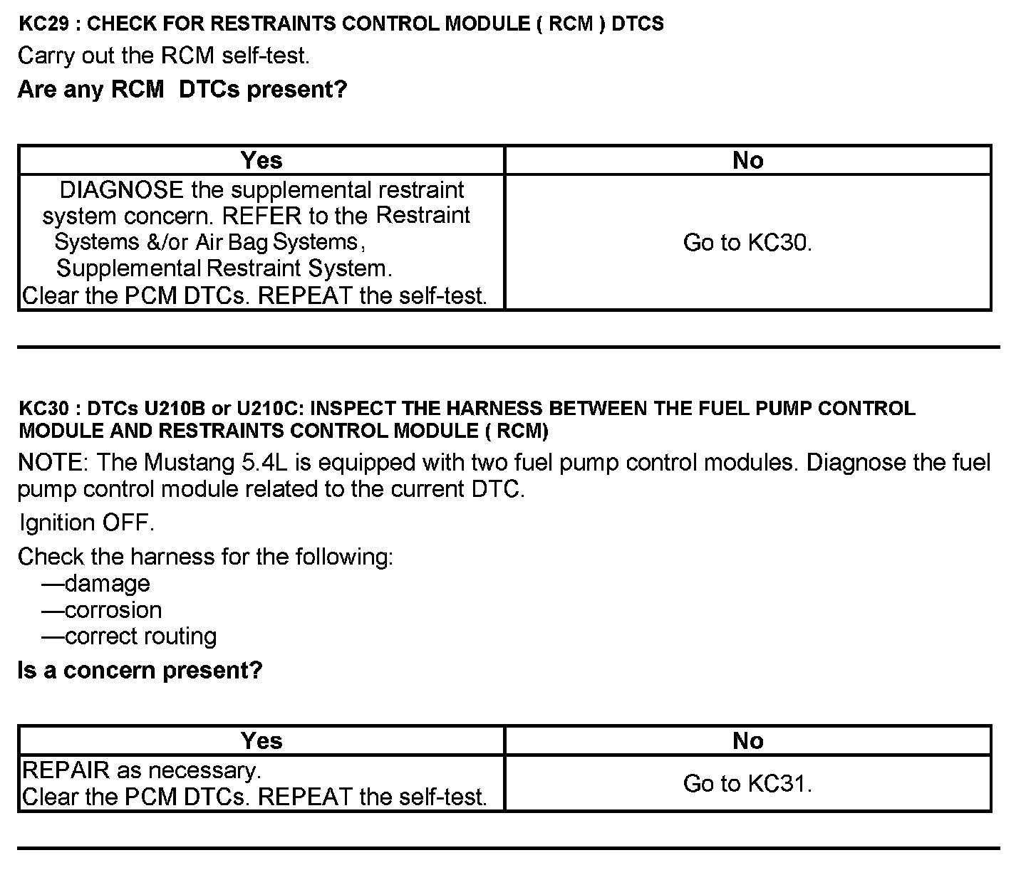 Home >> Ford >> 2012 >> Mustang V8-5.4L SC >> Repair and Diagnosis >> Powertrain Management >> Computers and Control Systems >> Testing and Inspection >> Pinpoint Tests >> Test KC: Fuel Pump Control Module