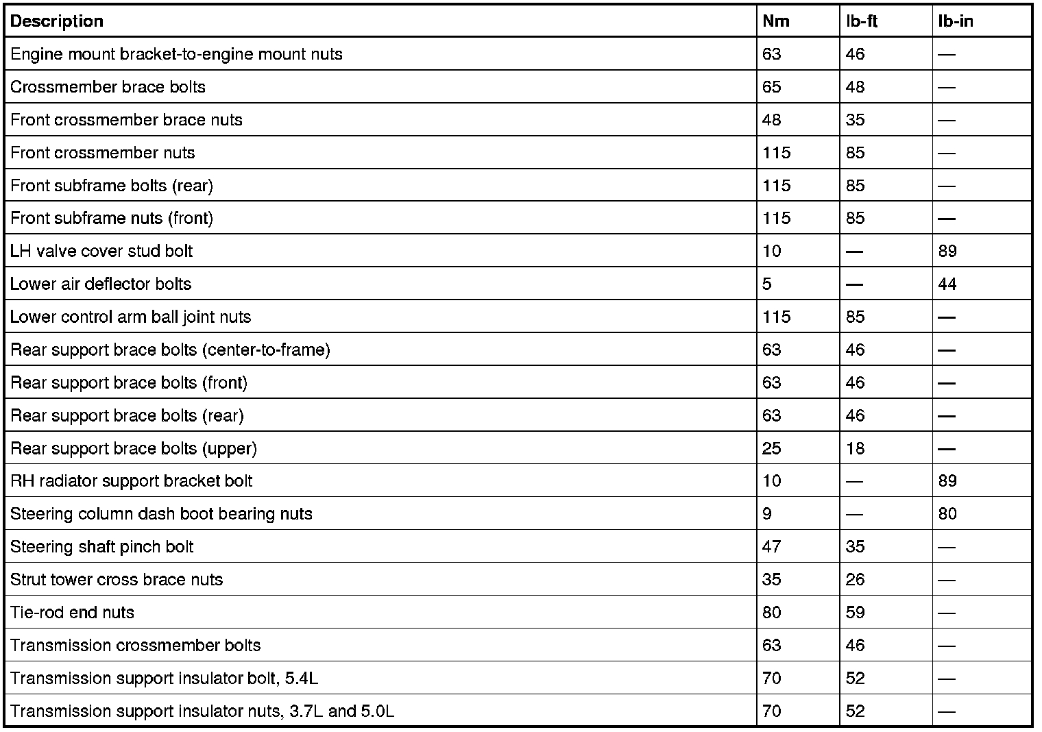 Torque Specifications