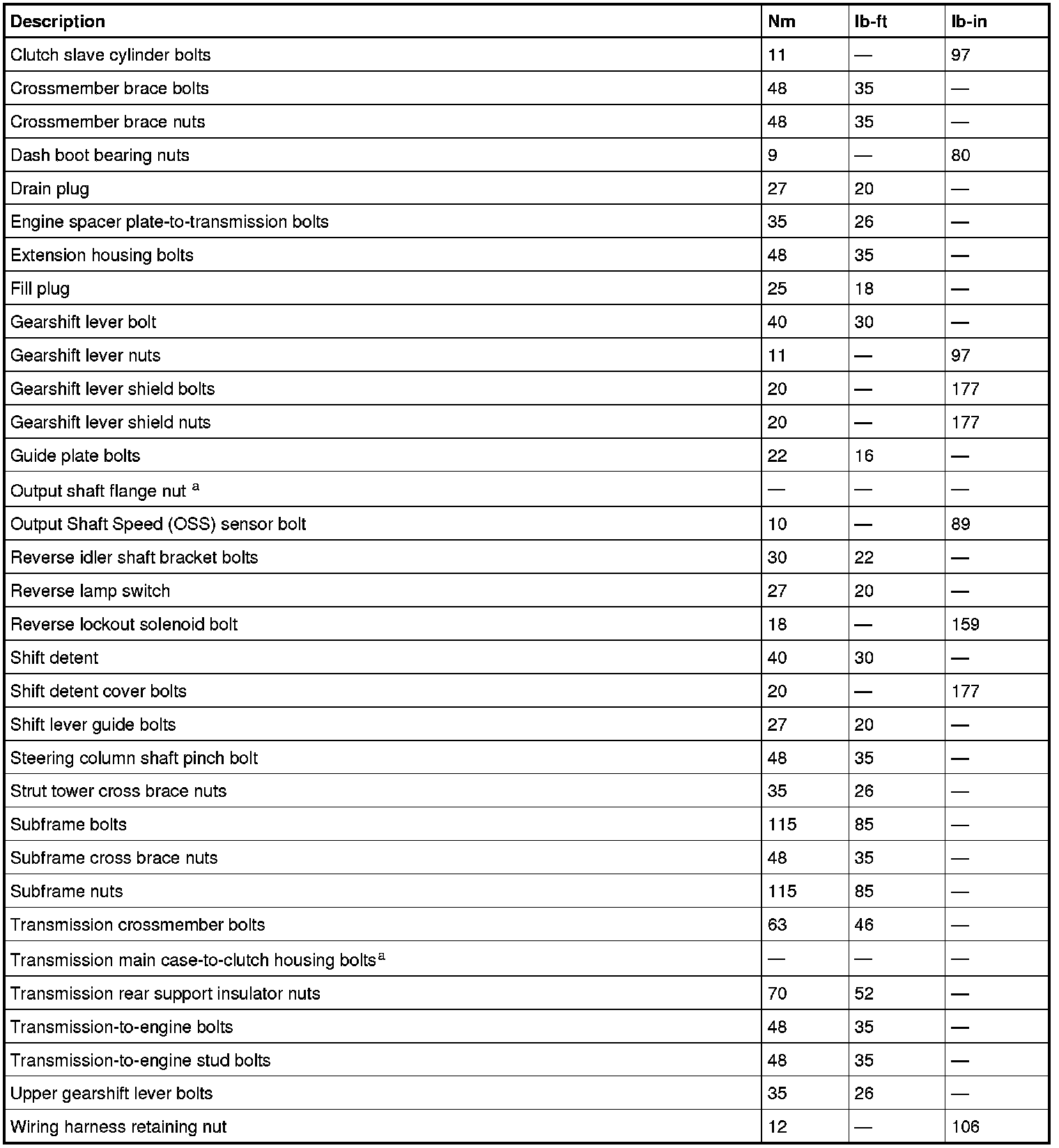 Torque Specifications
