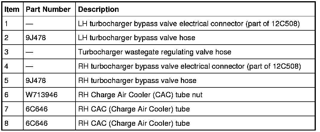 4. Disconnect the LH turbocharger bypass valve hose from the RH Charge Air Cooler (CAC) tube.