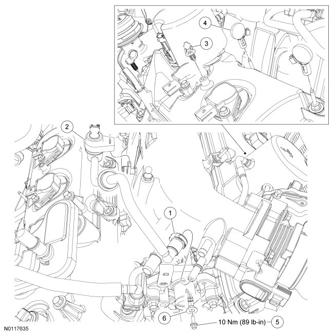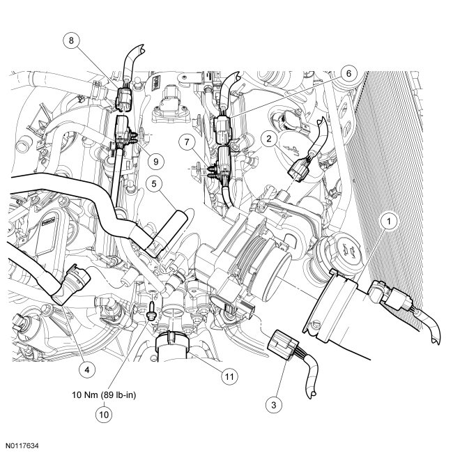 - Tighten in the sequence shown to 10 Nm (89 lb-in).