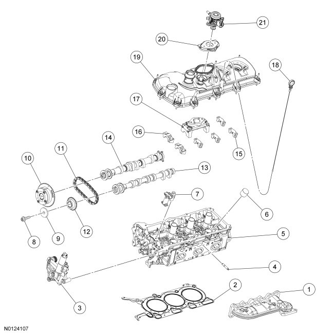 - Tighten the large bolts (1-14) to 24 Nm (18 lb-ft).
