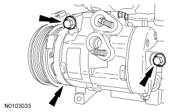 Install the A/C compressor and the 2 bolts.