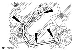 125. Install the RH turbocharger oil supply tube.